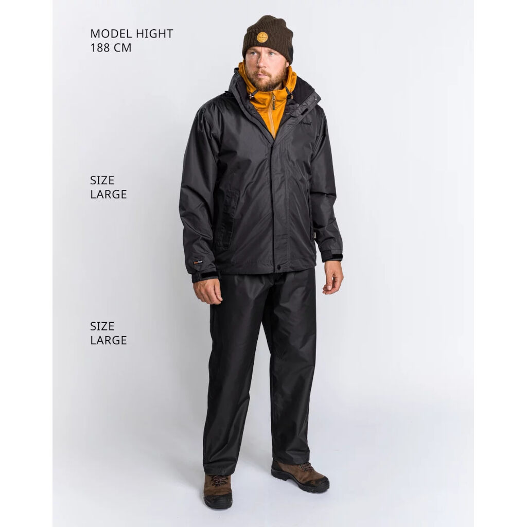 Zeer stevig regenpak dat water- en winddicht is met getapete naden. Gemaakt van een duurzame polyester met ripstop versterkte buitenstof, waardoor het een regenpak is dat je jarenlang kunt gebruiken.