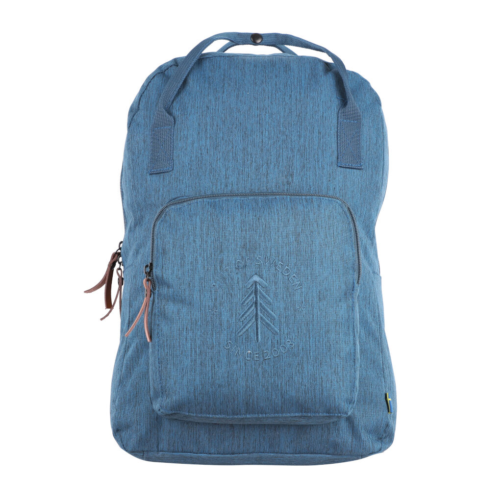 Rugzak met een groot hoofdvak met ritssluiting dat twee kleinere binnenvakken bevat, evenals een buitenvak met ritssluiting. Zitmatje inbegrepen.