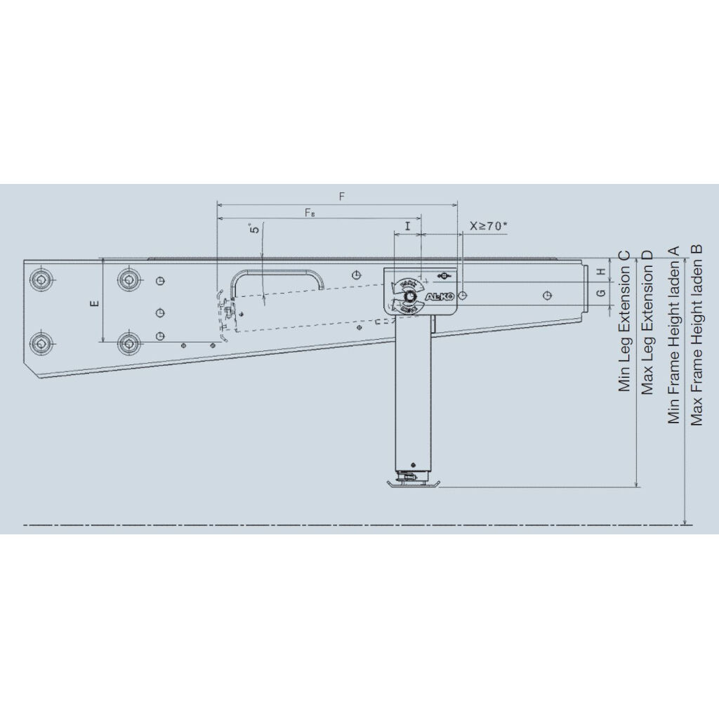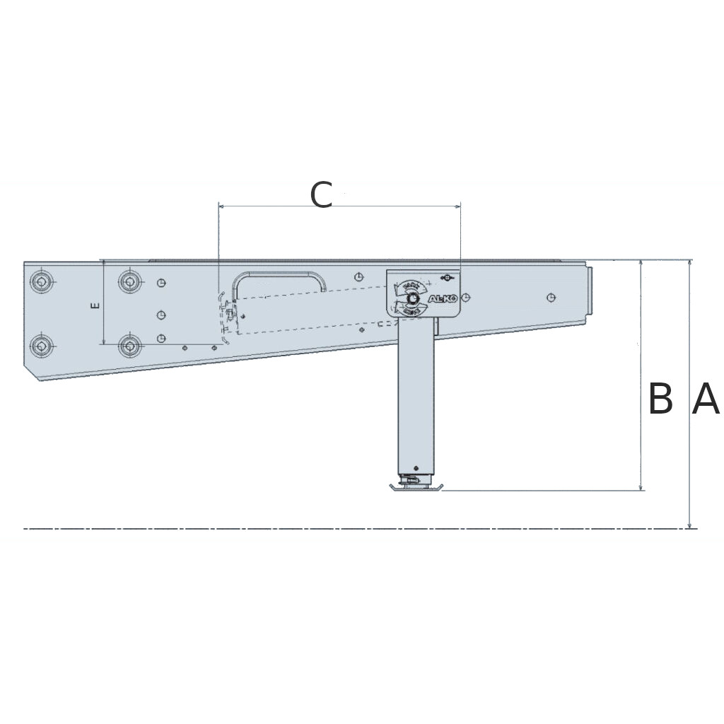 De steunpoten passen op alle AL-KO/AMC chassis en frameverlengingen die vanaf augustus 1995 zijn geproduceerd en zijn voorzien van voorgeboorde gaten. Dit maakt de montage zeer eenvoudig. Twee schroeven per poot met een boorpatroon van c/c 60 mm. Bij sommige campers kan het handig zijn om een gat in de zijskirts te boren voor gemakkelijkere toegang tot de slinger van de steunpoten.