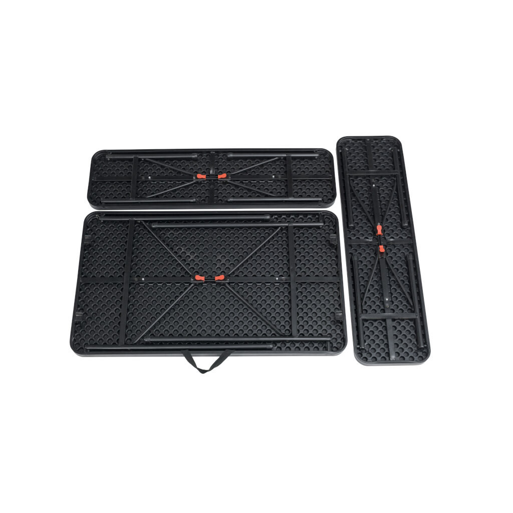 Picknickset bestaande uit een opvouwbare kampeertafel en twee opvouwbare banken. Alles kan worden ingepakt tot een klein formaat met een ingebouwd handvat. Met stalen frames en stevige kunststof oppervlakken zijn ze zeer bestand tegen zowel weer als slijtage.