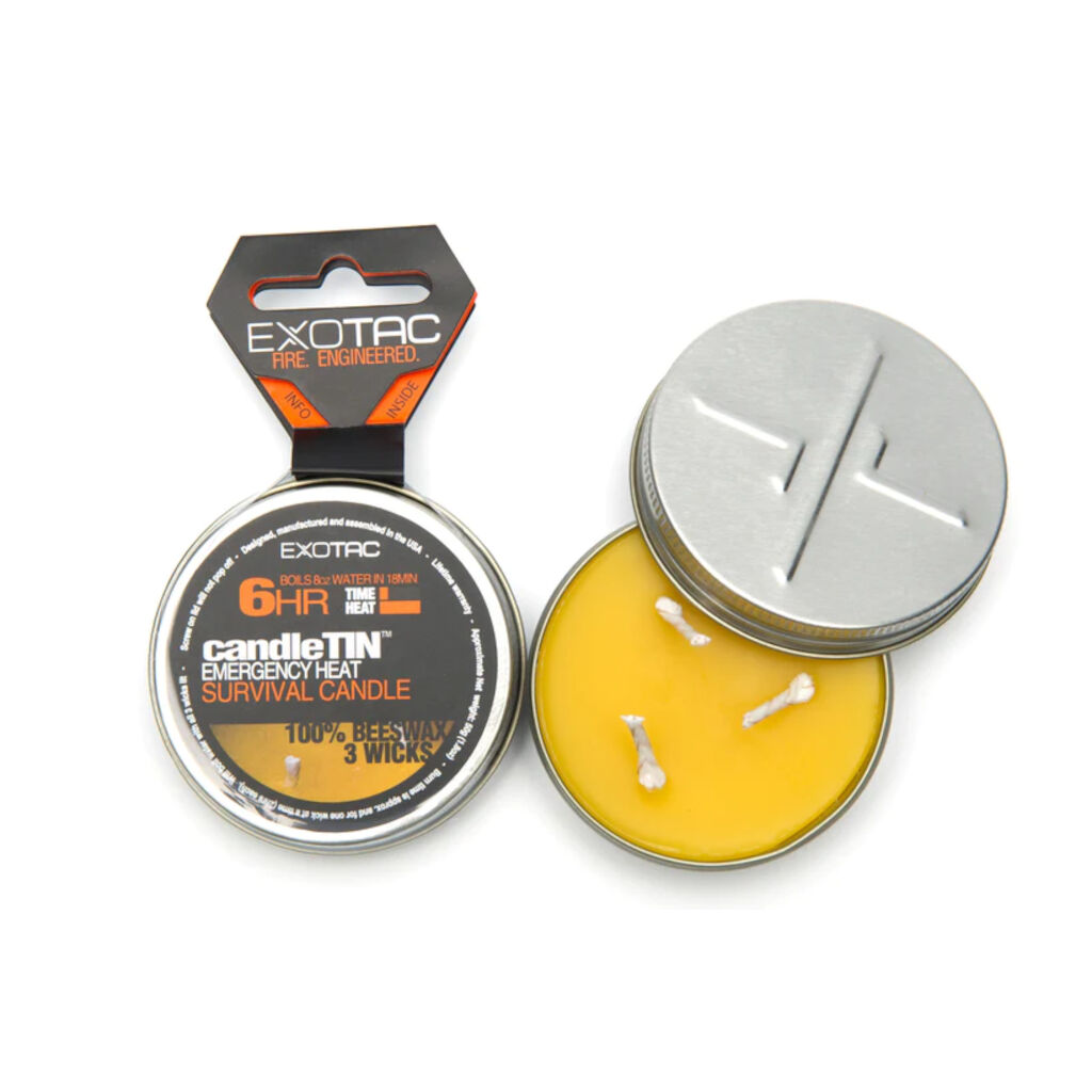 Exotac Candle is een noodwarmtekaars gemaakt van 100% natuurlijke bijenwas, wat een langdurig licht geeft. Steek de kaars aan en je kunt water koken, kleding drogen en een externe warmtebron krijgen.