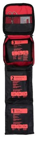 EHBO-set dat 38 onderdelen bevat en waarmee je kleine en grote wonden kunt verzorgen, evenals kleine brandwonden.