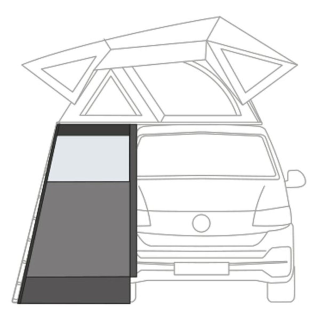 Voortent voor de Moonlight 140 daktent met meerdere toepassingen. Perfect voor degenen die meer privacy willen of een extra beschutte plek om te verblijven.