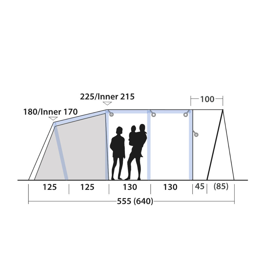 | Nokhoogte | 225 cm in tent and 215 cm in the inner tent |