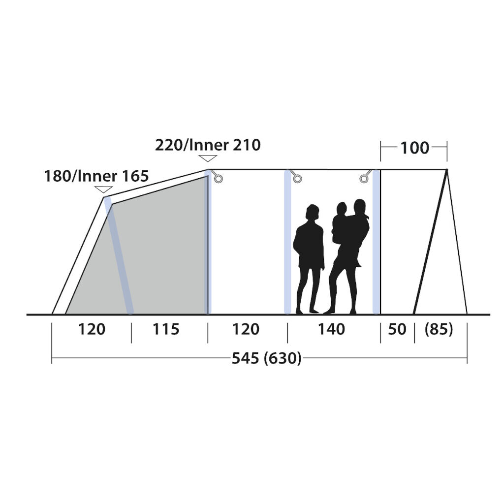 | Nokhoogte | 220 cm, Inner tent 210 cm |