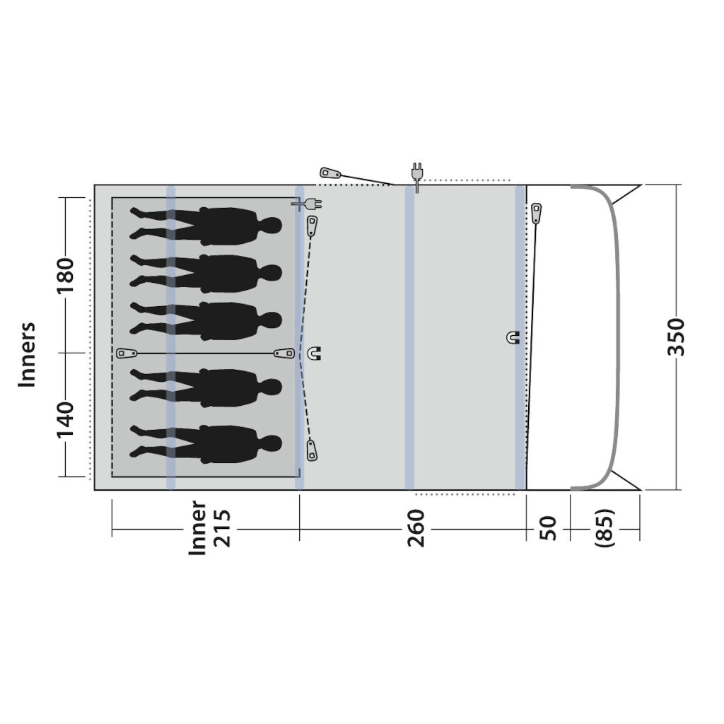 - Outwell Quick & Quiet Inner door - Een van de slaapkamers heeft naast de rits een magnetische strip zodat deze geopend en gesloten kan worden zonder rits