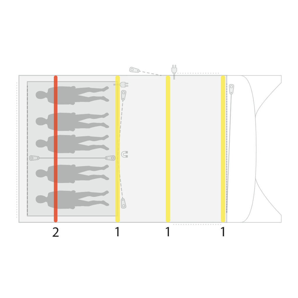 | Slaapcabine | Dark roof panel and sides reduce light penetration to improve sleep quality, 100% polyester |