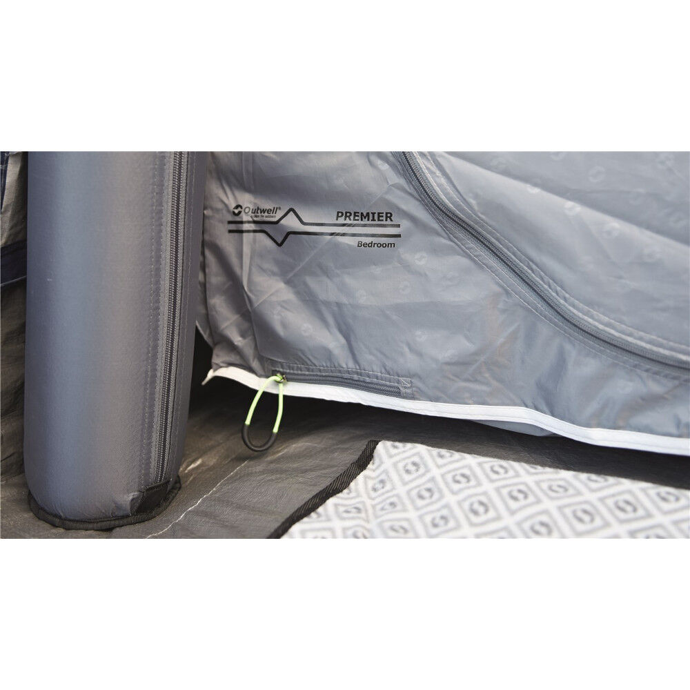 Een van de nieuwigheden dit jaar in het assortiment van Outwell is de Bayfield 5A. Een iets kleiner tent geschikt voor gezinnen of groepen tot vijf personen maar die bij voorkeur gebruikt kan worden door gezinnen met twee kinderen om wat extra ruimte te hebben in de woonruimte en in een slaapkamer. In plaats van stokken gebruikt het de Air technologie van Outwell waarbij de stokken zijn vervangen door luchtkanalen voor een eenvoudige montage. De drie kanalen worden eenvoudig opgepompt via het ventiel aan de onderkant van de zijkant van de tent. De enige stok die meegeleverd wordt is die voor het dak aan de voorkant en die kan gemonteerd worden nadat de tent is opgezet.
