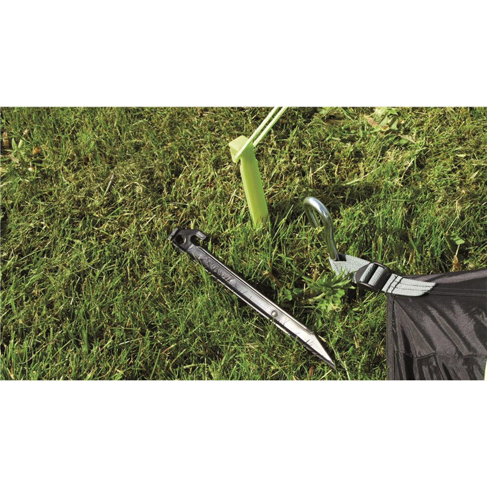 Luchtkanalen in plaats van tentstokken maken de tent extreem snel opzetbaar. Het enige wat je hoeft te doen is het tentdoek op de grond te bevestigen en vervolgens blaas je de respectievelijke kanalen op met de meegeleverde pomp. De enige stok die meegeleverd wordt is die voor de regenbescherming aan de voorkant, die gemakkelijk te monteren is nadat de tent is opgezet. Bevestig daarna de tentlijnen en de tent is klaar voor gebruik. Eenvoudig, slim en snel.