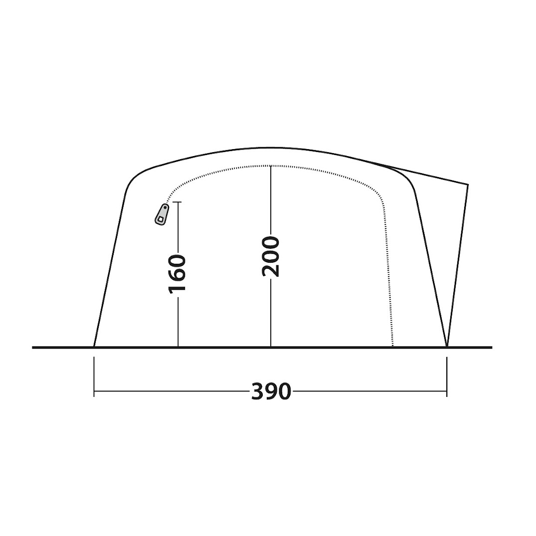 De buitenruimte kan eenvoudig worden geopend en gebruikt om te eten of samen te zijn, beschermd tegen zon en wind, en dankzij de gaasdeur kun je jezelf ook beschermen als er insecten in de buurt zijn. Om de grootte van de buitenruimte te vergroten, kan de slaapcabine eenvoudig worden gedemonteerd. Als je ook een vloer in de buitenruimte wilt, kun je een vloerbescherming aanschaffen (niet inbegrepen).