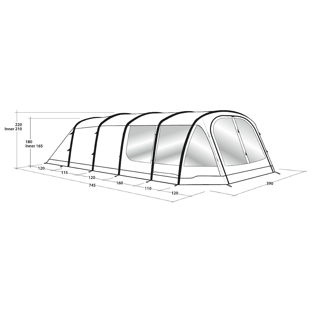 | Nokhoogte | 220 cm, Inner tent 210 cm |