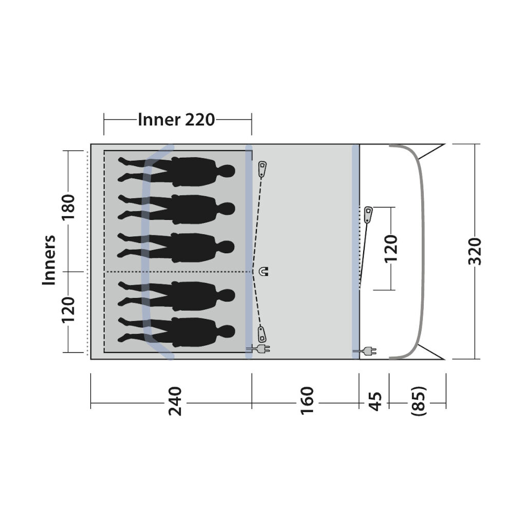 - Donkere stof in het plafond en zijpanelen van de binnentent beschermt tegen de avond- en ochtendzon – perfect voor gezinnen met kinderen