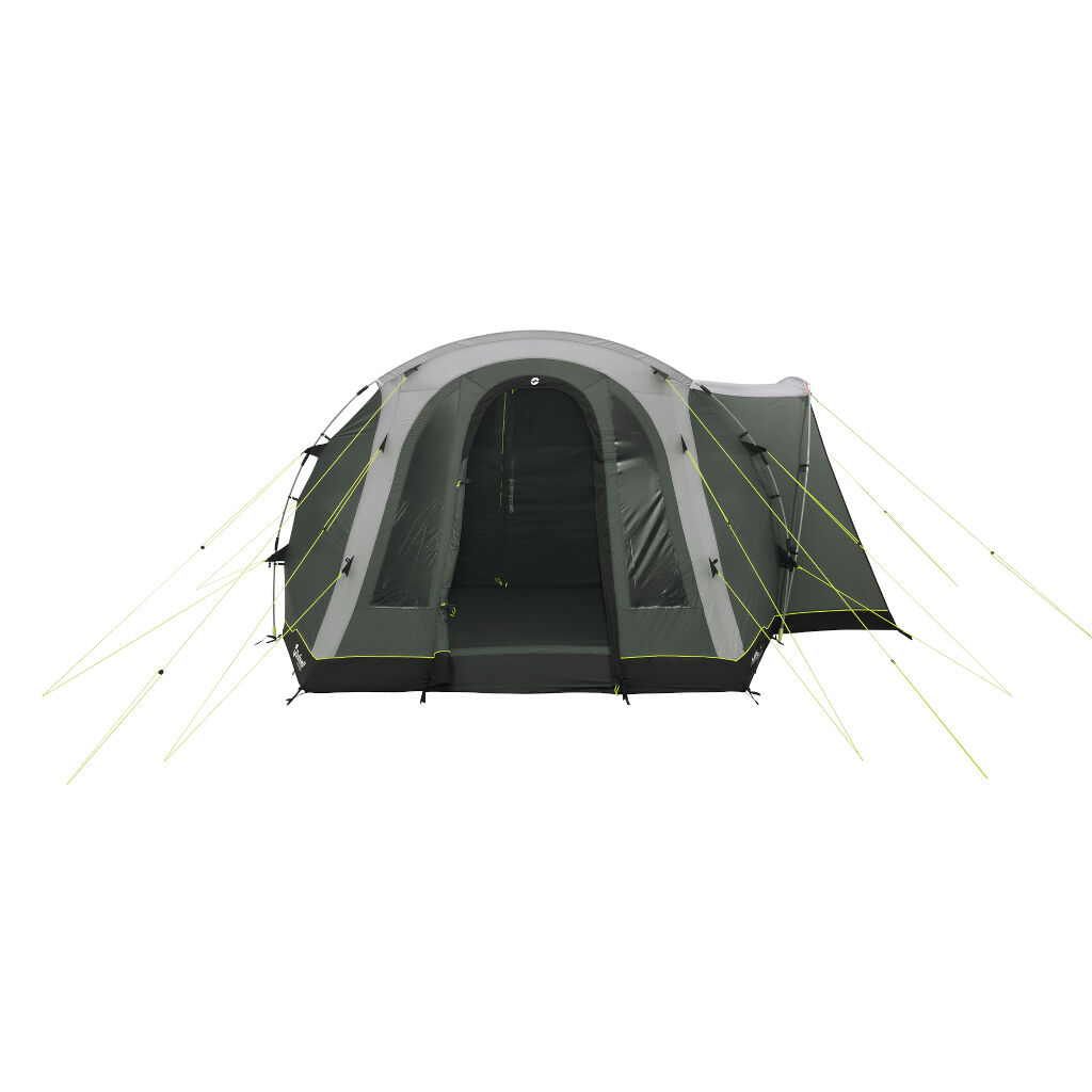 De tent heeft twee ingangen, één aan de zijkant en één aan de voorkant. De regenbestendige zij-ingang is vooral handig bij slecht weer en biedt gemakkelijke toegang tot zowel het slaapgedeelte als het woongedeelte.