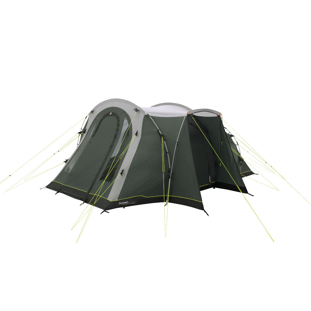 De slaapcabine is verdeeld in twee slaapkamers (3+2). Een uniek detail is de extra ruime slaapcabine (Outwell Premier Bedroom), die extra ruimte biedt in zowel de lengte als de hoogte in vergelijking met standaard tentcabines, waar de bedden de volledige lengte innemen en de achterwand vaak lage hoogte biedt in grote delen van de kamer. Perfect om bagage in de slaapcabine te plaatsen of om gewoon extra bewegingsruimte te hebben. De wand tussen de slaapkamers kan worden verwijderd als je de hele familie in één grote slaapkamer wilt samenbrengen.