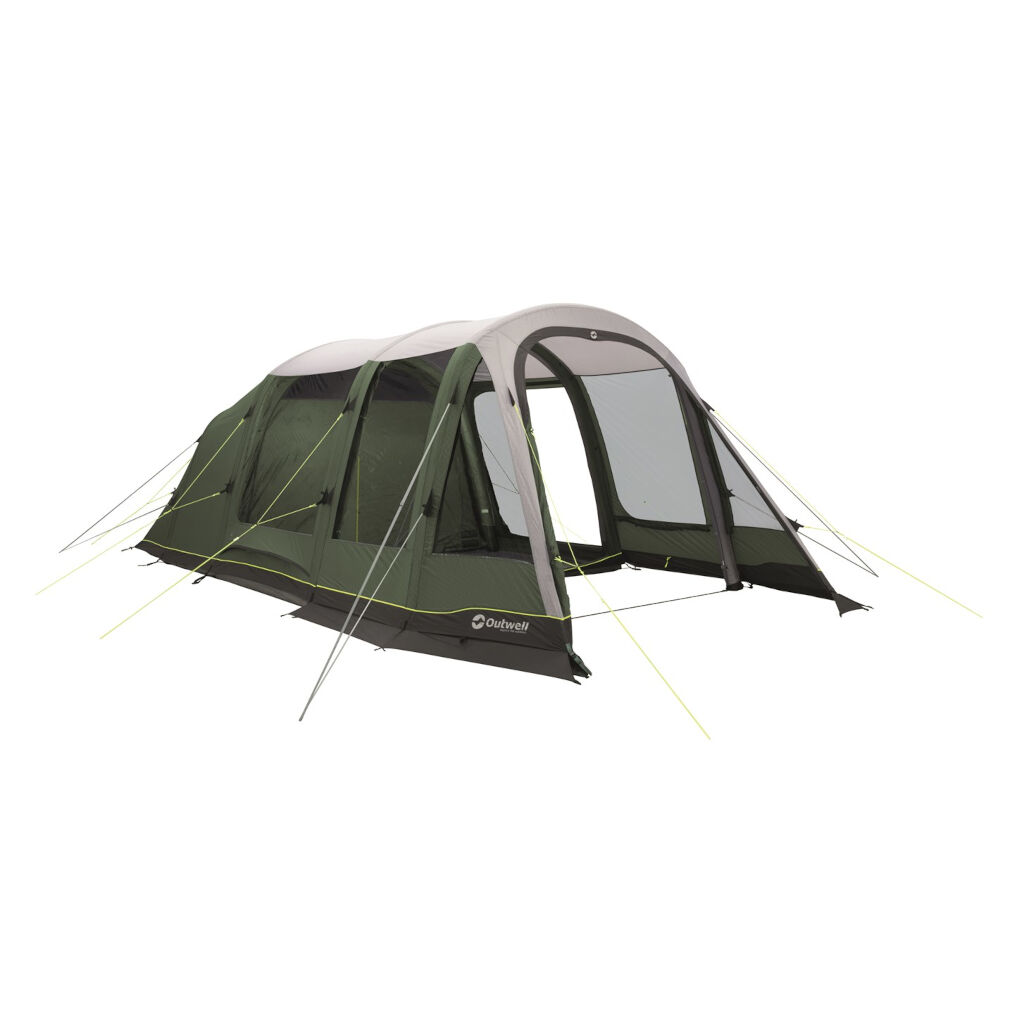 Groot en snel op te zetten 4-persoons familietent van Outwell die gebruik maakt van luchtkanalen in plaats van stokken. Twee donkere slaapruimtes, een grote woonkamer met vastgenaaide vloer en een extra kamer aan de voorkant bieden voldoende ruimte voor zowel het gezin als de uitrusting. De kamer aan de voorkant heeft een grote deur en kan worden geopend om een schaduwrijke plek te creëren of om bescherming te bieden tegen regen en wind. De kamer aan de voorkant biedt ook ruimte voor uitrusting die je bij slecht weer wilt opbergen maar niet in de tent wilt hebben.