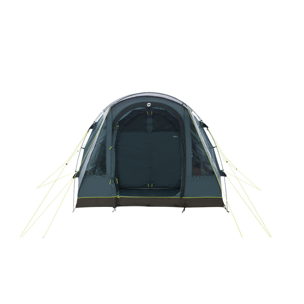 De Outwell Sky 4 is een familietent ontworpen voor gezinnen met maximaal twee kinderen, met voldoende ruimte in zowel het slaapgedeelte als de leefruimte. Het ontwerp van de tent doet denken aan een hut met een uitstekend dak dat de deur beschermt tegen regen en zon. Dit kleine dak kan ook worden gebruikt voor het opbergen van schoenen, speelgoed of uitrusting.