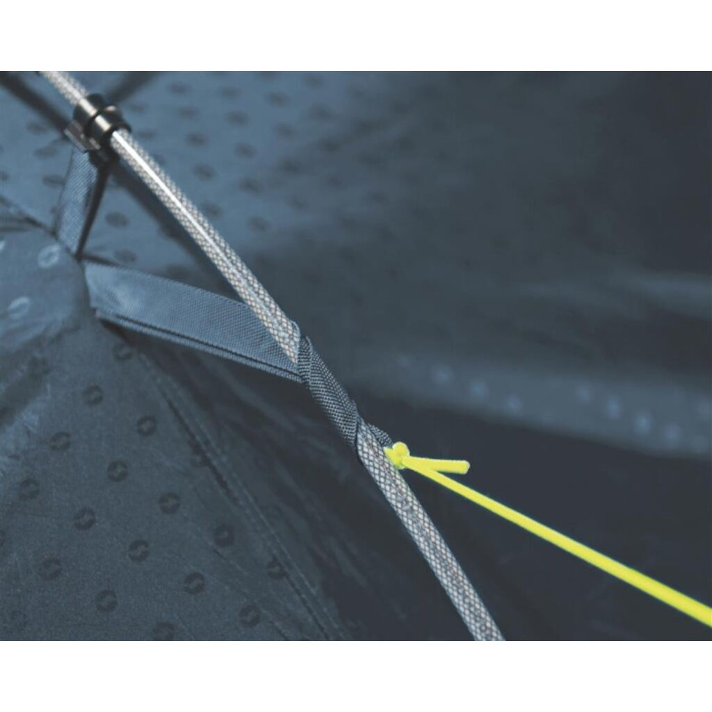 De tent biedt goede ventilatie met een brede ventilatieopening achteraan die kan worden aangepast om de gewenste luchtstroom te verkrijgen. Het buitendoek is volledig waterdicht met getapete naden en is brandvertragend. Het binnentent hoeft niet te worden verwijderd bij het inpakken van de tent. De stokken zijn kleurgecodeerd voor eenvoudigere montage.