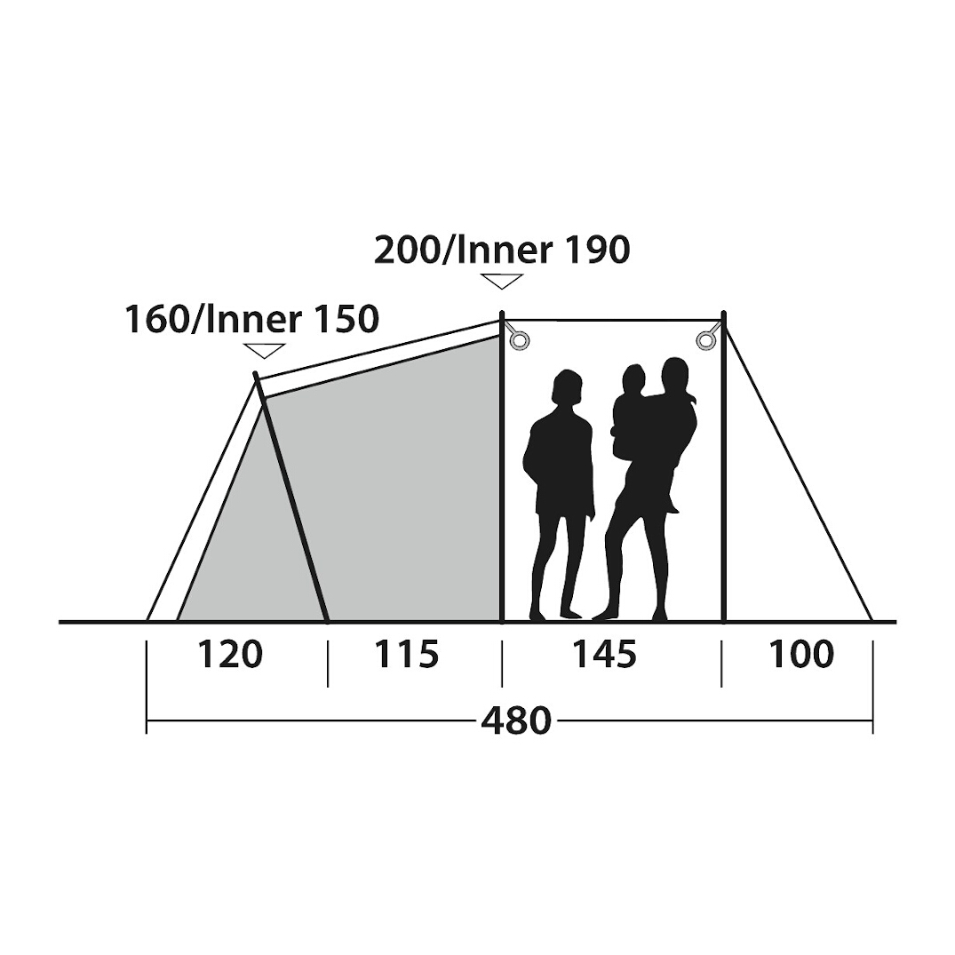- Outwell Dark Inners: Donkere stof in het dak en zijpanelen van de slaapcabine en in de buitendoek boven de slaapcabine beschermt tegen avond- en ochtendzon