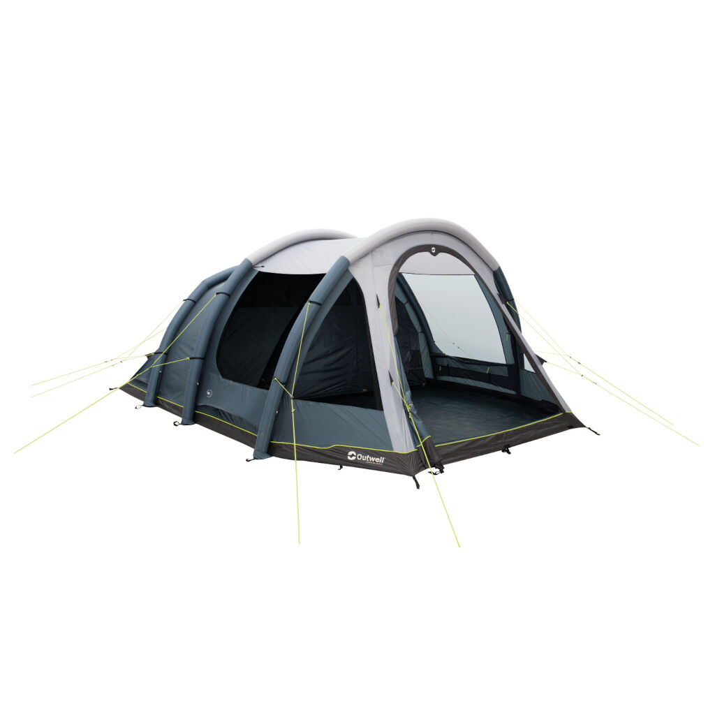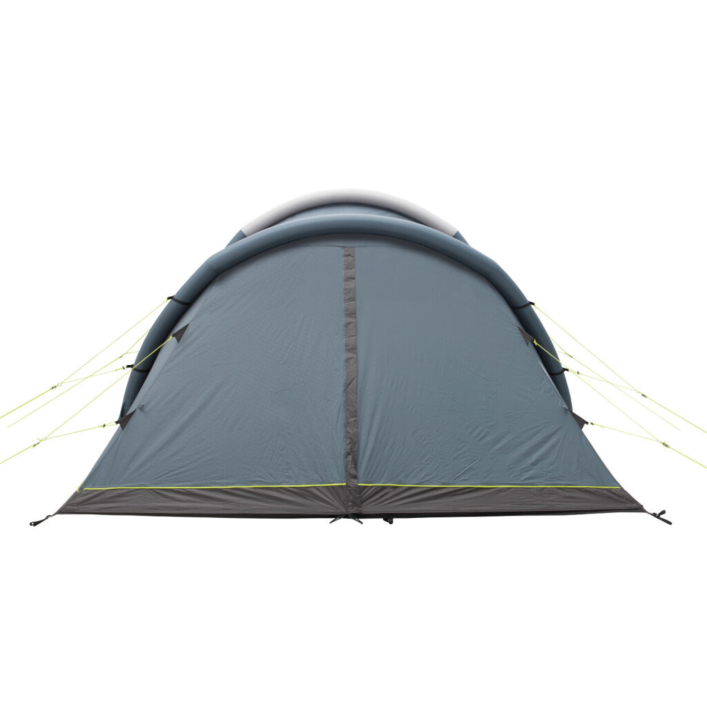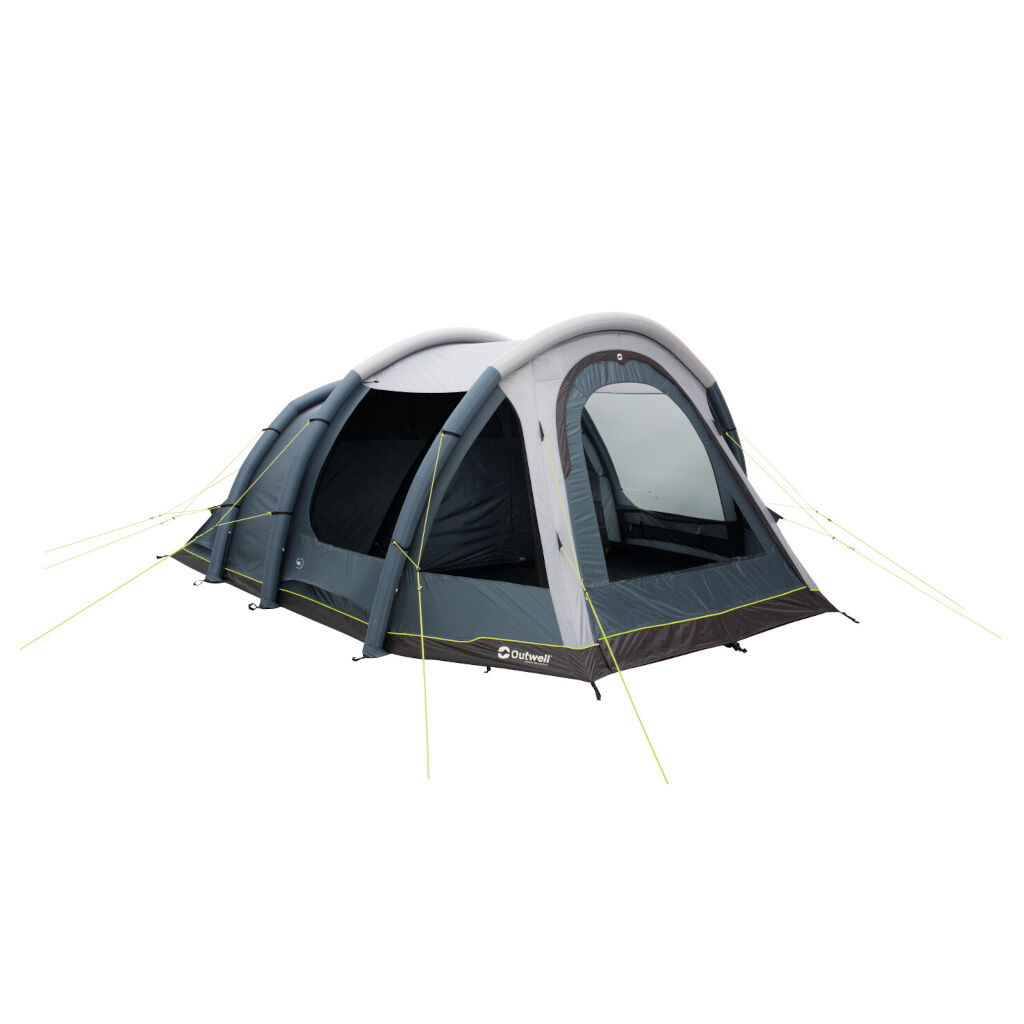 Kom snel op zijn plaats met deze snel op te zetten zespersoonstent van Outwell die luchtkanalen gebruikt in plaats van gewone stokken. Een slaapcabine met minder lichtinval die kan worden opgedeeld in drie slaapkamers biedt een goed slaapcomfort. De woonkamer heeft ruimte om te worden ingericht met een tafel en stoelen en heeft een volledig vastgenaaide vloer die beschermt tegen tocht, insecten en condens. De tent heeft een grote opening aan de voorkant en een kleinere aan de achterkant, waardoor de tent kan worden geopend voor ventilatie op warme dagen.