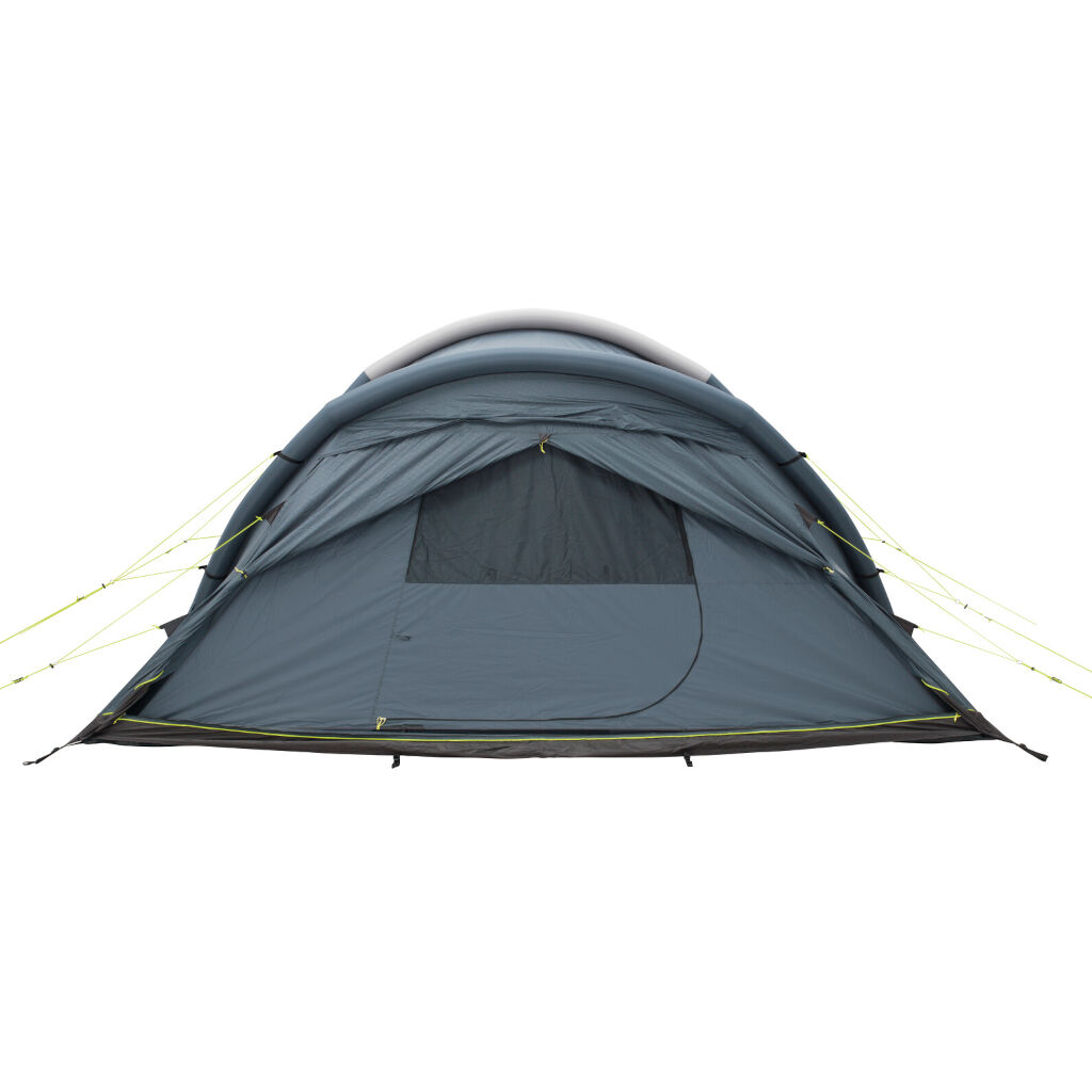 De Outwell Starhill 6A is een opblaasbare familietent voor gezinnen met maximaal vier kinderen. Omdat het relatief licht is voor een luchttent, kan het gemakkelijk alleen worden opgezet, wat het ook geschikt maakt voor degenen die alleen met de kinderen willen kamperen. In plaats van stokken maakt het gebruik van Outwells Rigid Air-technologie waarbij de stokken zijn vervangen door luchtkanalen voor eenvoudige montage. De drie kanalen worden eenvoudig opgeblazen via het ventiel aan de onderkant van één kant van de tent. Grote ramen zorgen voor een lichte en aangename tent en als je de inkijk wilt verminderen, zijn er gordijnen op alle ramen. De deur van de familietent bedekt de hele voorkant, zodat de tent gemakkelijk kan worden geopend op warme dagen en de woonkamer als een beschutte buitenruimte kan worden gebruikt. De kleinere deur aan de achterkant biedt zowel gemakkelijke toegang tot de slaapcabine als kan worden geopend op warme dagen om een luchtstroom door de tent te creëren.