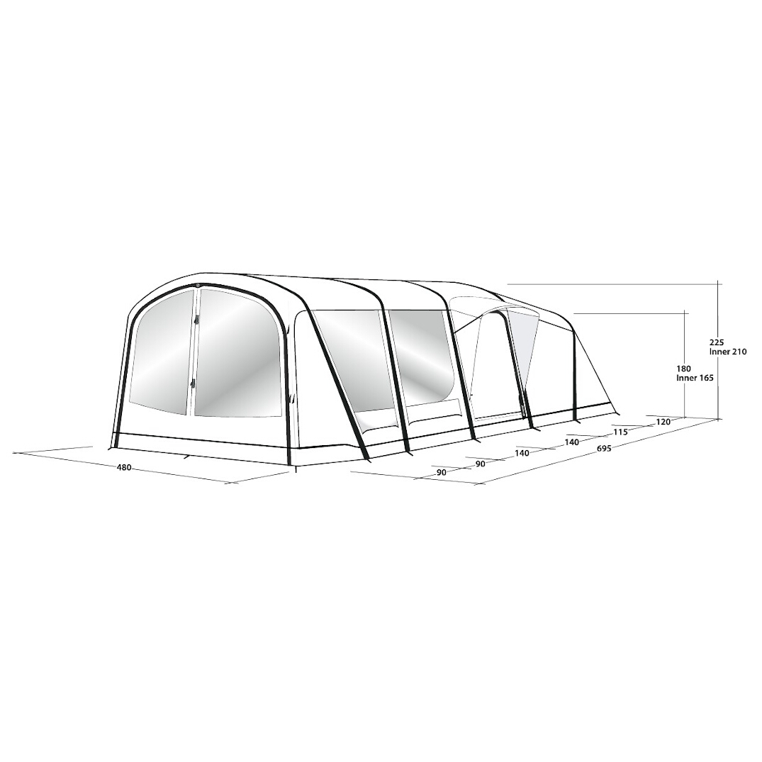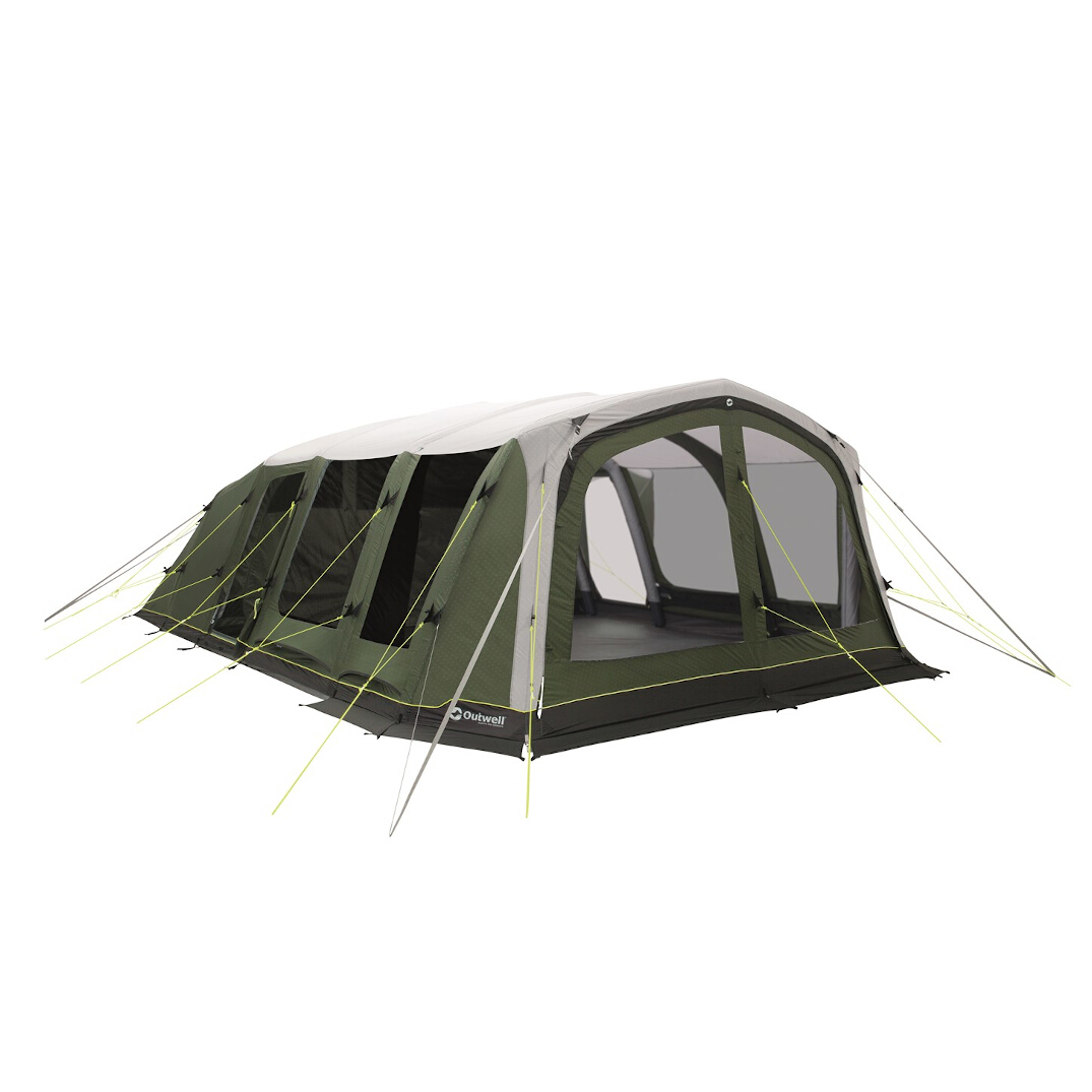In plaats van stokken maakt de familietent gebruik van de Rigid Air-technologie van Outwell, waarbij de stokken zijn vervangen door luchtkanalen voor eenvoudige montage. De vijf kanalen worden eenvoudig opgeblazen via het ventiel aan de onderkant van één kant van de tent, wat zowel snel gaat als het mogelijk maakt de tent alleen op te zetten. Naast de eenvoudige montage heeft de tent een duurzaam tentdoek dat niet alleen bestand is tegen regen en wind, maar ook minder ritselt dan eenvoudigere doeken wanneer het beweegt. Grote ramen zorgen voor een lichte en aangename tent en als je de inkijk wilt verminderen, zijn er gordijnen op alle ramen.