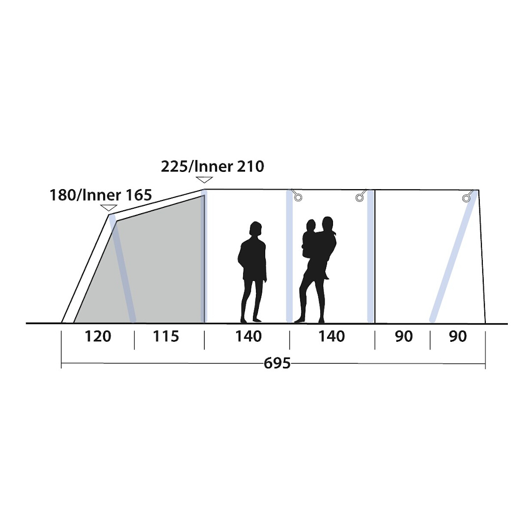 | Nokhoogte | 225 cm, Inner tent 210 cm |