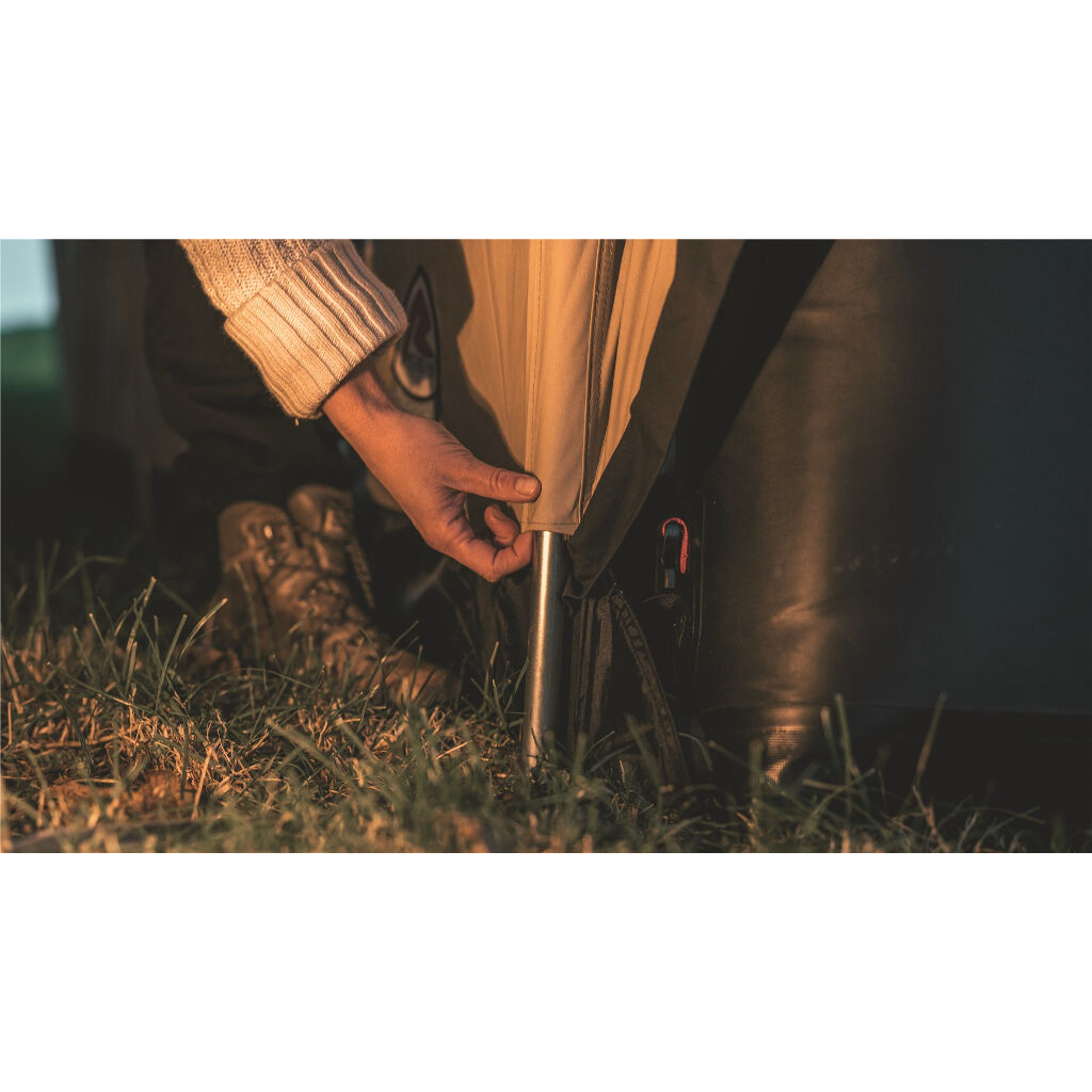 - Kan worden aangevuld met een kachel, binnentent voor 6 of 3 personen en een tarp die zon-/regenbescherming biedt aan de voorkant van de tent