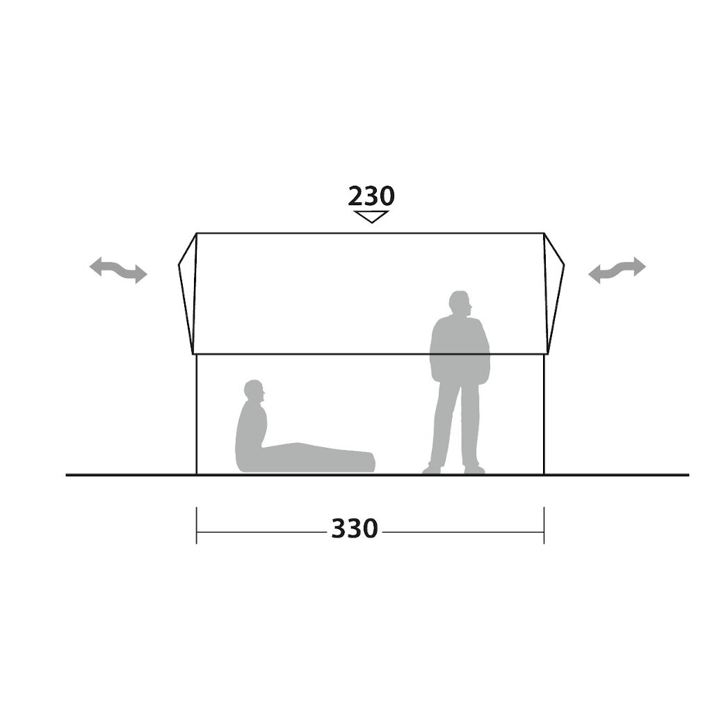 Door gebruik te maken van de tarp die als accessoire verkrijgbaar is, kunnen twee tenten worden samengevoegd en ontstaat er een beschutte doorgang tussen de tenten.