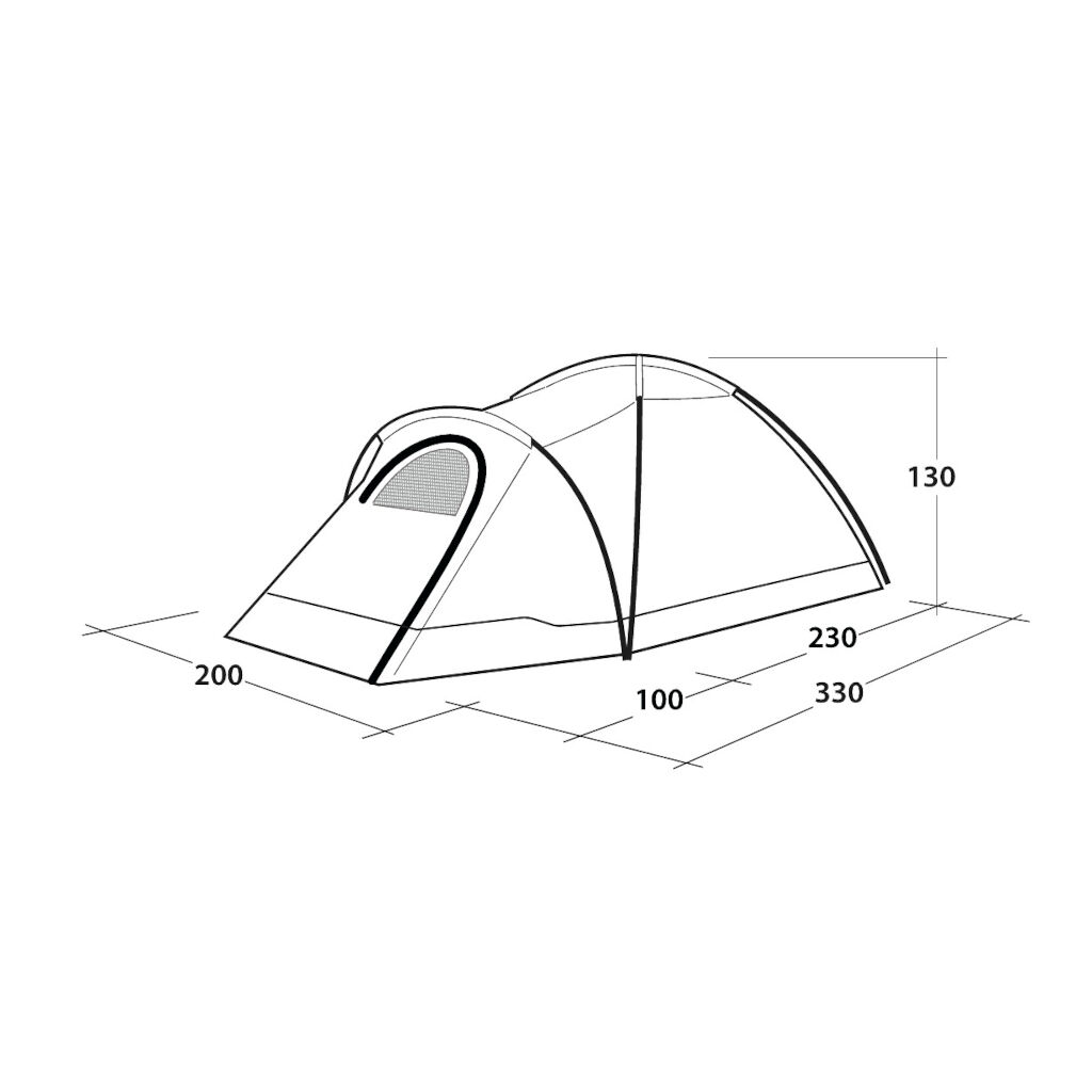 Ruime en zeer eenvoudig op te zetten tent voor maximaal drie personen. Twee ingangen maken de tent zowel gemakkelijk toegankelijk als verbeteren de ventilatie op warme dagen. Donkere slaapcabine met lage lichtdoorlatendheid biedt een goed slaapcomfort tijdens heldere zomernachten. Geschikt voor zowel kamperen als buitenactiviteiten.