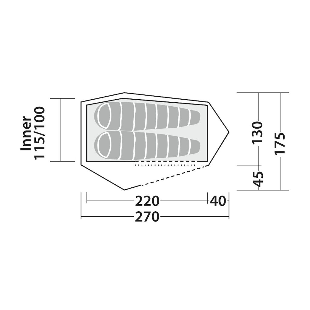 - Voorruimte en een kleiner compartiment aan het voeteneinde (toegankelijk via rits in het binnentent) voor uitrusting