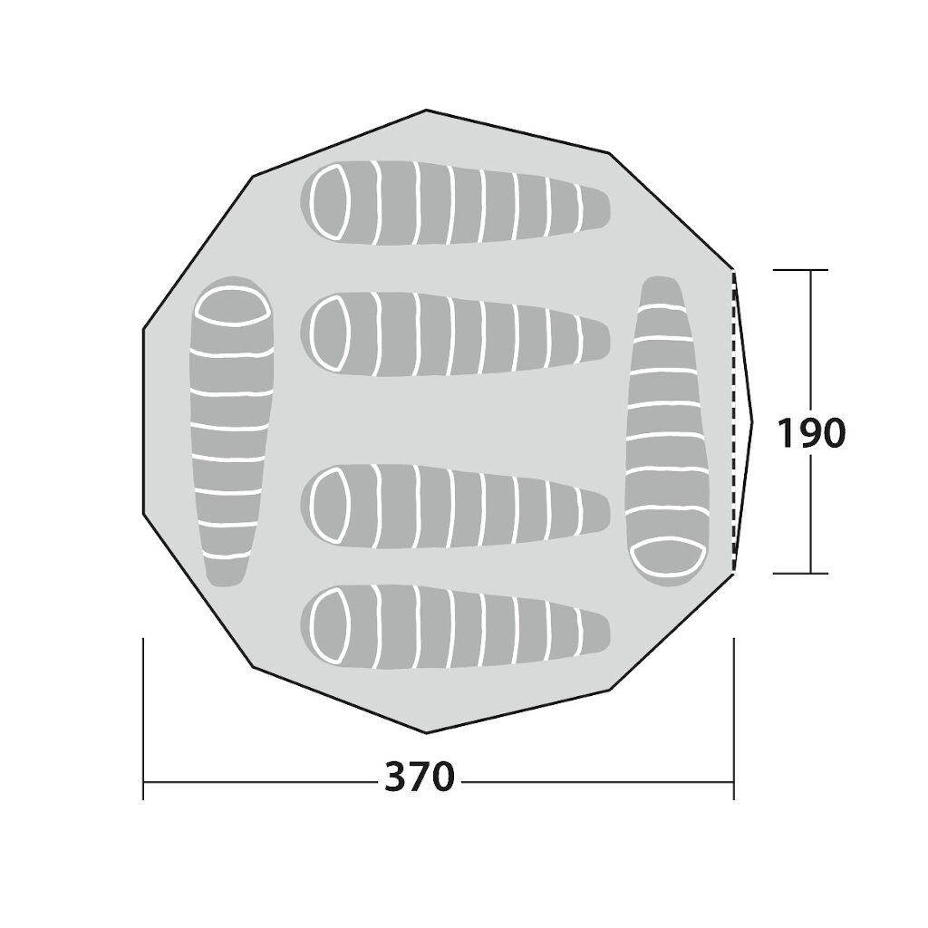 - Kan worden aangevuld met kachel, binnentent voor 4 personen en een tenttapijt