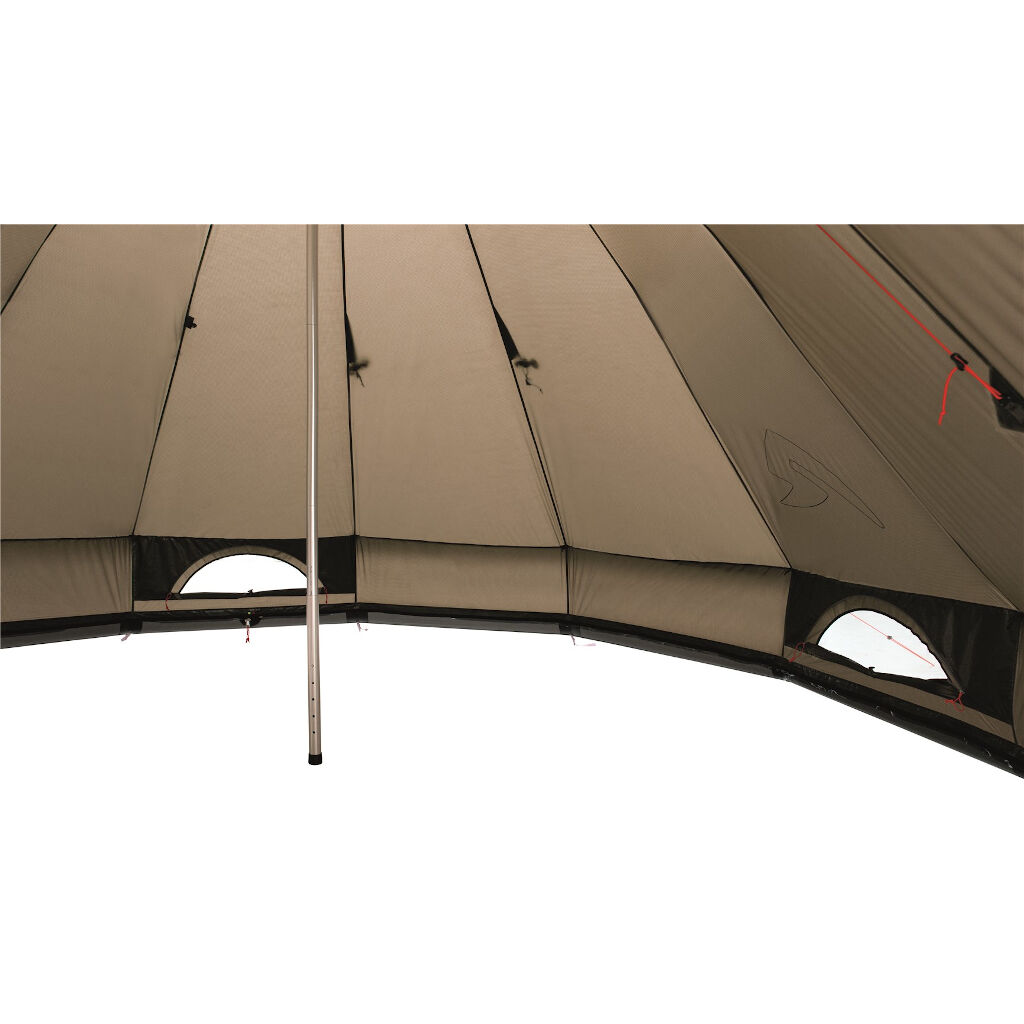 De vloer van de tent heeft een ritssluiting, zodat deze kan worden verwijderd als je de tent zonder vloer wilt gebruiken. De vloer heeft ook een ritssluiting naar het midden, zodat als je een kachel gebruikt, je een sectie van de vloer kunt openen om te voorkomen dat deze door de kachel wordt beschadigd. Bovenaan de tipi is er een verstelbare ventilatie en de tent heeft drie kleinere ventilatieopeningen aan de onderrand. Deze kunnen ook worden gebruikt om meer licht in de tent te laten.