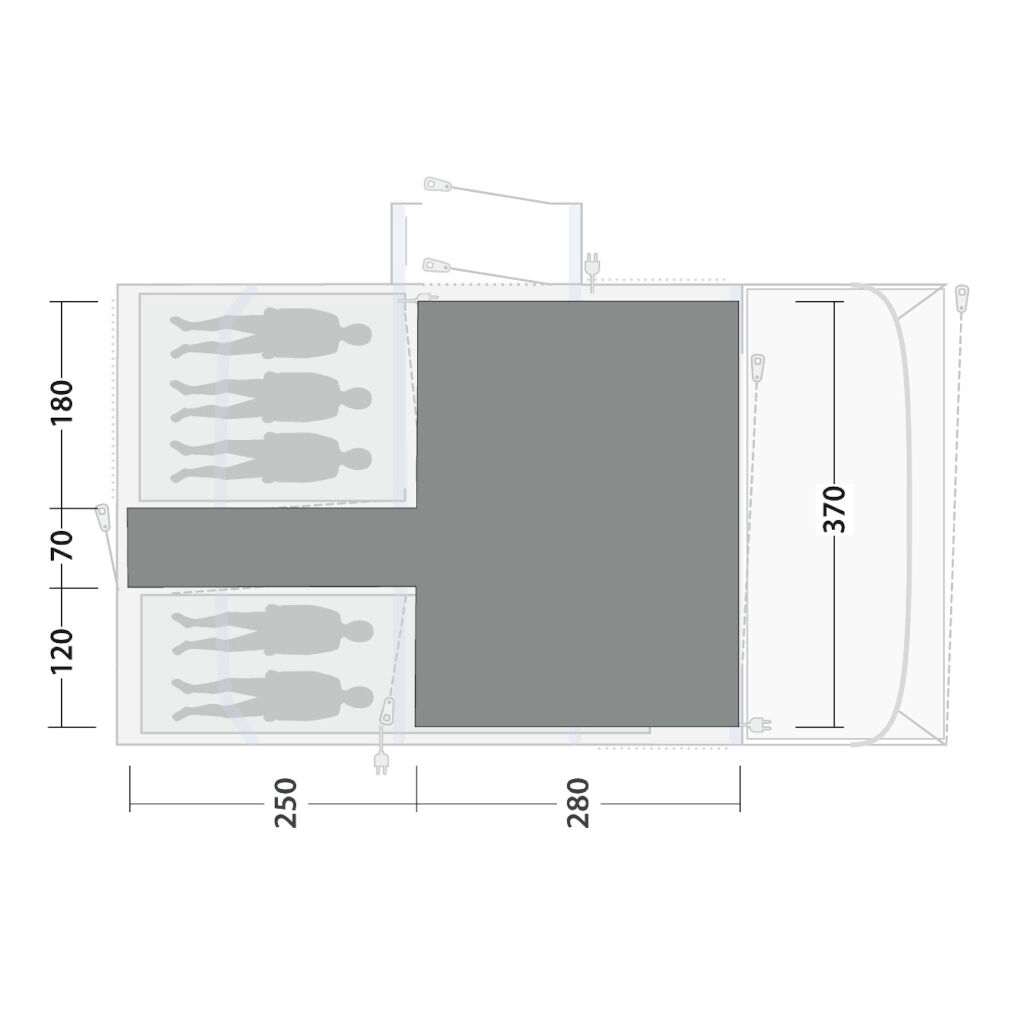 Creëer een heerlijk gevoel en verhoog het comfort in uw Outwell Vermont 7 Air familietent met een op maat gemaakt tapijt voor de tent.