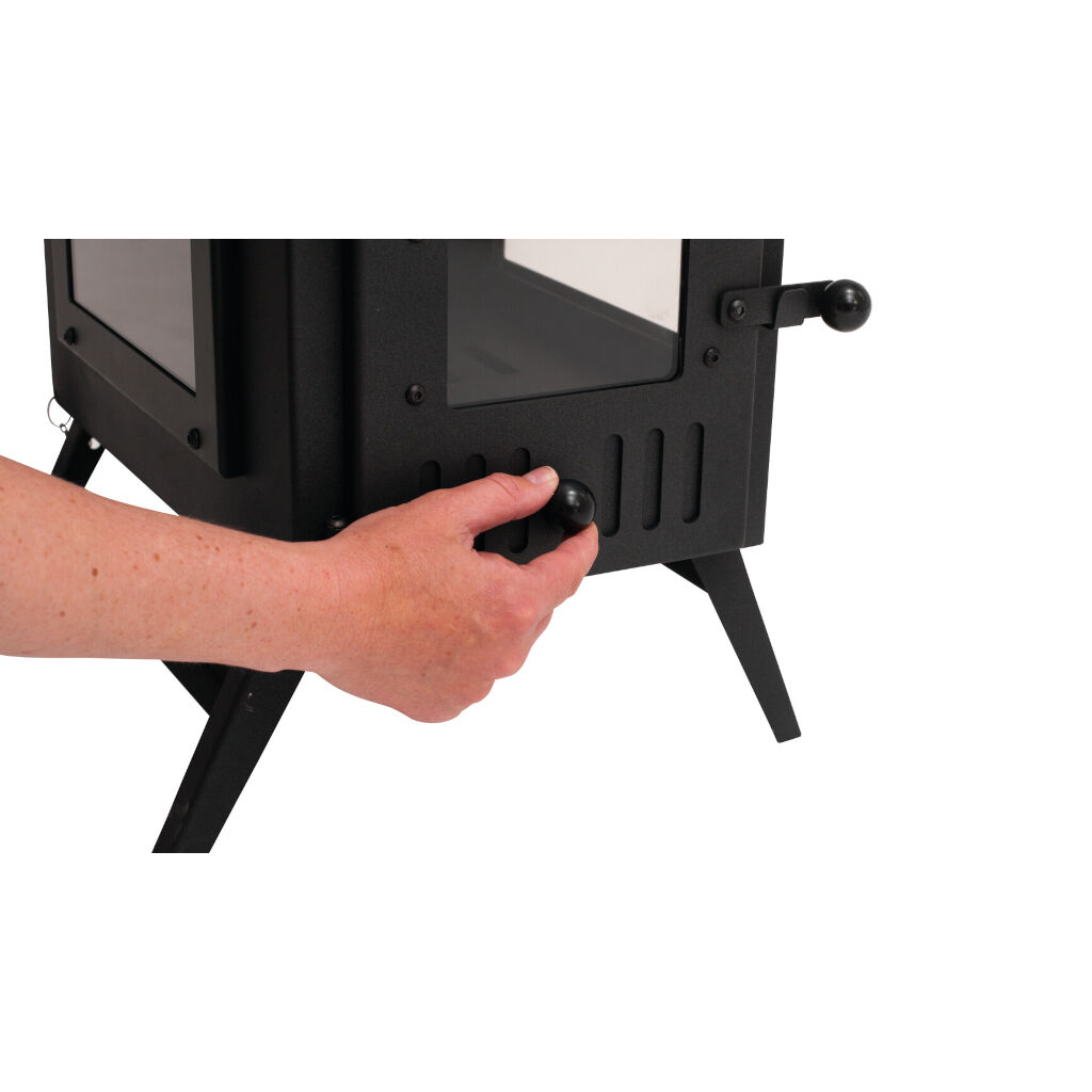 Eenvoudig te monteren tentkachel die kan worden gebruikt in de meeste tenten die zijn voorbereid voor een kachel. Volledig luchtdichte deur en grote demper bieden goede controle over het vuur. Droogrek en kookplaat bieden veel gebruiksmogelijkheden. Sterker Duits vervaardigd kachelglas aan drie zijden geeft een goed gevoel in de tent terwijl het gemakkelijk is om het vuur te inspecteren.