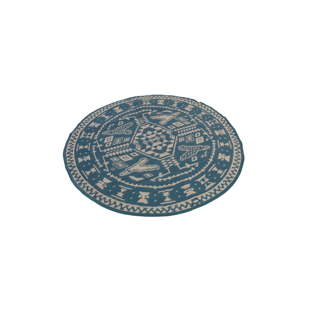 Geprint tapijt van duurzaam materiaal dat eenvoudig schoon te maken is en een knusse sfeer geeft aan de tent of buitenruimte.