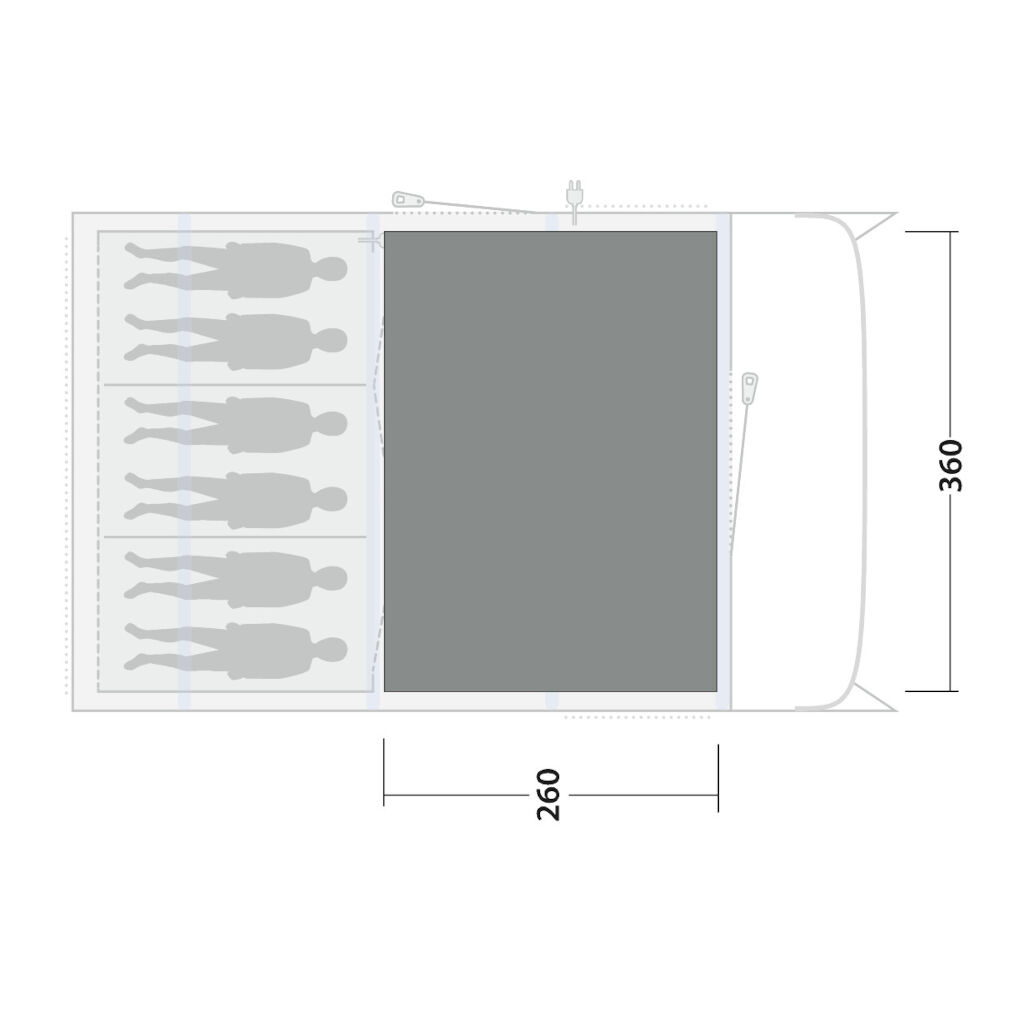 Creëer een heerlijk gevoel en verhoog het comfort in je Outwell Moonhill 6 Air familietent met een op maat gemaakt tapijt voor de tent.