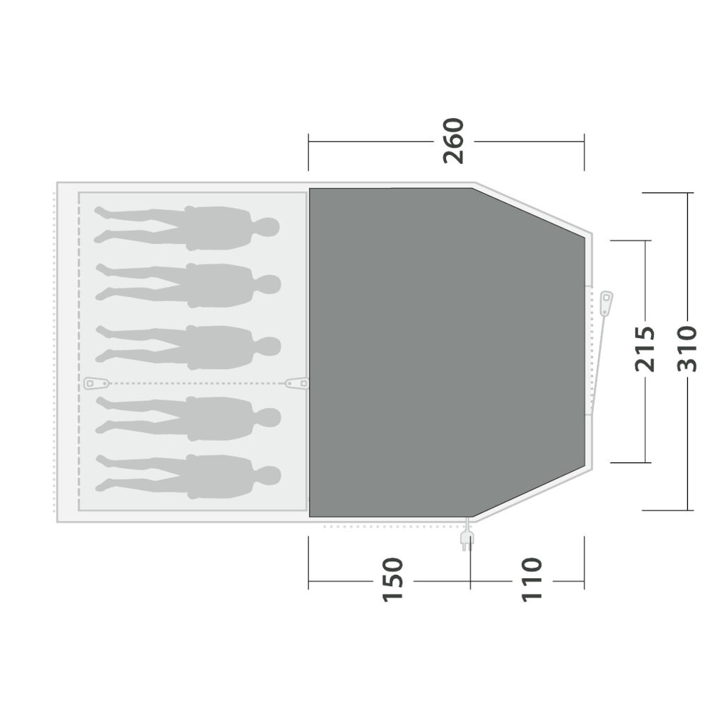 Creëer een heerlijk gevoel en verhoog het comfort in uw Outwell Nevada 5 familietent met een op maat gemaakt tapijt voor de tent.