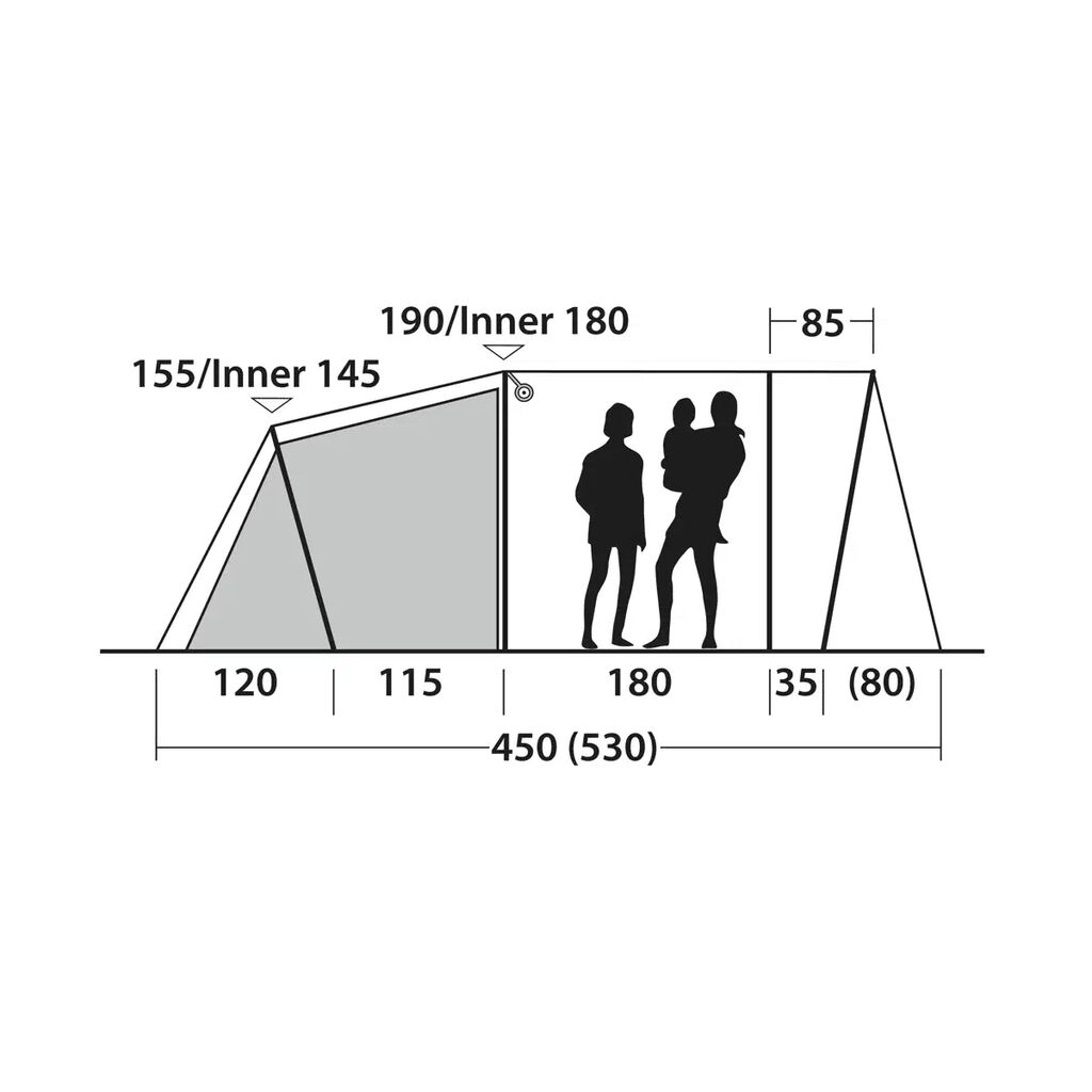 - Donkere stof in het dak en de zijpanelen van de binnentent en in het buitendoek boven de slaapcabine beschermt tegen avond- en ochtendzon – perfect voor gezinnen met kinderen