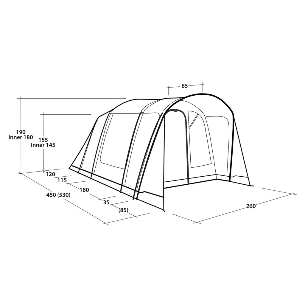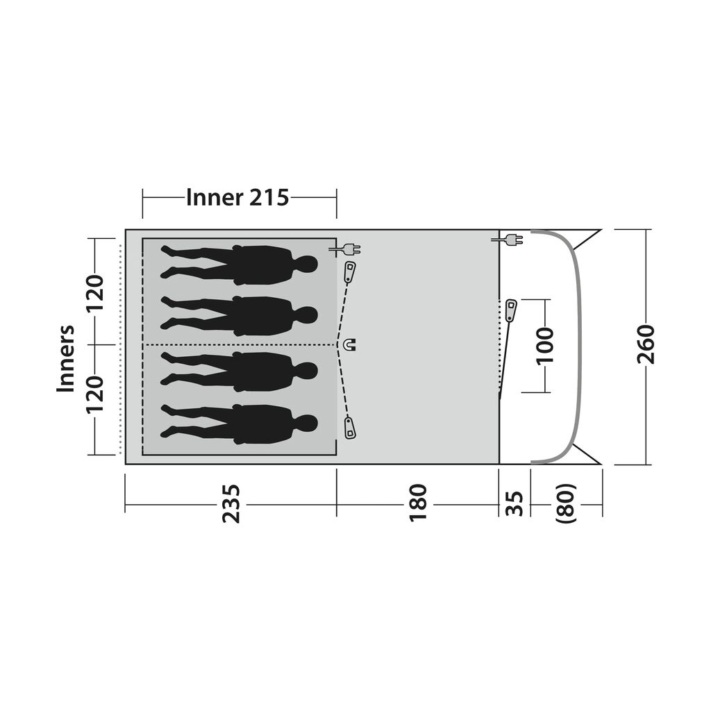 - Scheidingswand in de binnentent kan worden verwijderd om één grote slaapkamer te creëren