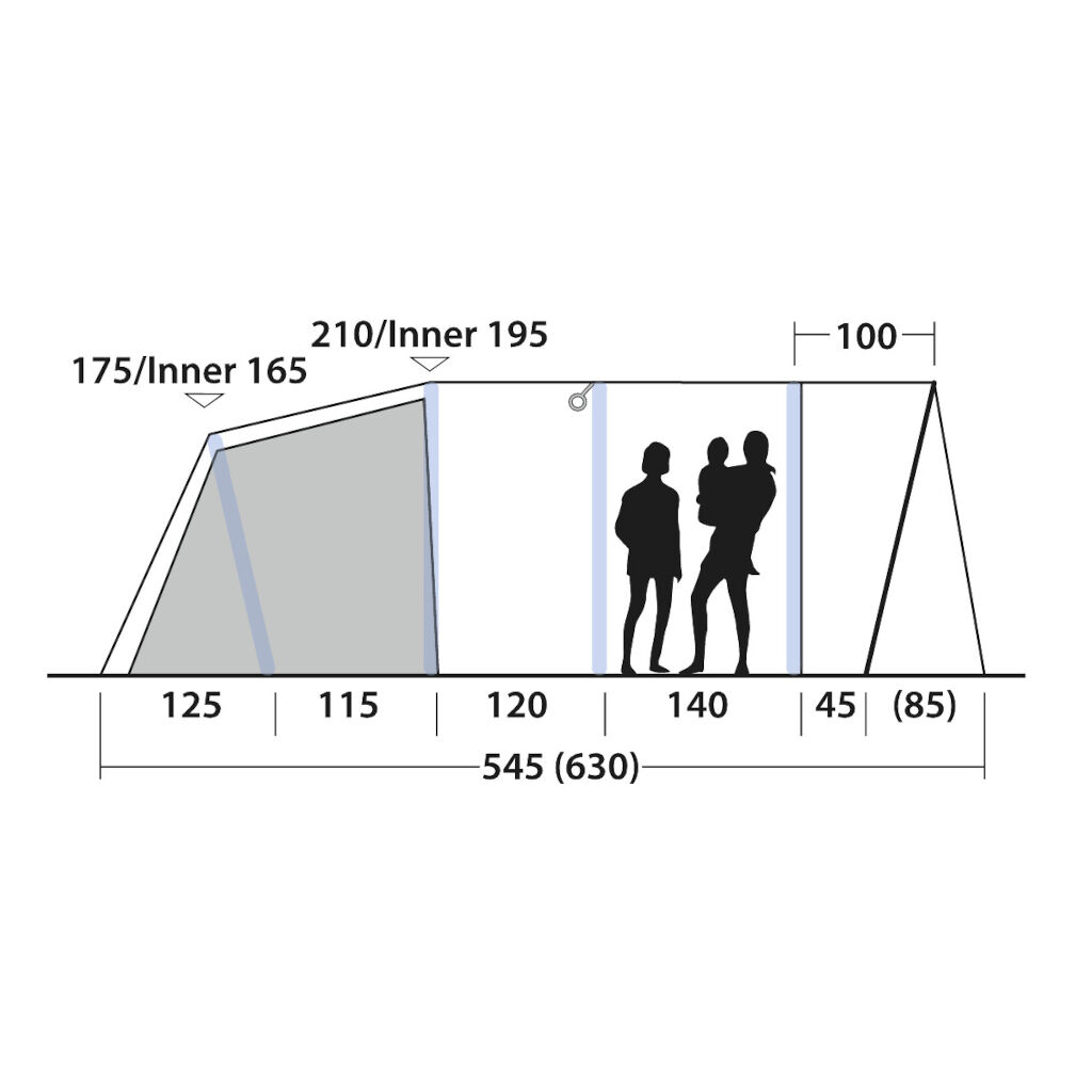 Snel op te zetten familietent met luchtbuizen en royale plafondhoogte, een extra diep zonneluifel en een leefruimte van 260 x 320 cm. Dankzij de Rigid Air-technologie hoeft u alleen de tentstof aan de grond te bevestigen en de luchtkanalen op te pompen met de meegeleverde pomp. De enige gebruikte stok is voor de zonneluifel en kan worden gemonteerd zodra de tent is opgezet. De vastgenaaide vloer biedt effectieve bescherming tegen vuil, tocht en insecten, en de tent is in slechts enkele minuten klaar voor gebruik. De tent heeft ook grote getinte ramen die zacht, aangenaam licht binnenlaten en tegelijkertijd de inkijk verminderen en beschermen tegen warmte. De familietent heeft twee deuren, één aan de zijkant en één aan de voorkant. De zijingang maakt de binnenste leefruimte gemakkelijk toegankelijk, vergemakkelijkt de plaatsing op de camping en kan op warme dagen worden geopend om de tent te ventileren.