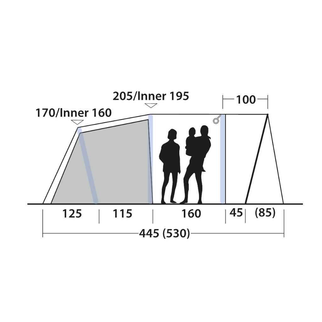 - Donkere stof in het plafond en zijpanelen van de binnentent beschermt tegen de avond- en ochtendzon – perfect voor gezinnen met kinderen