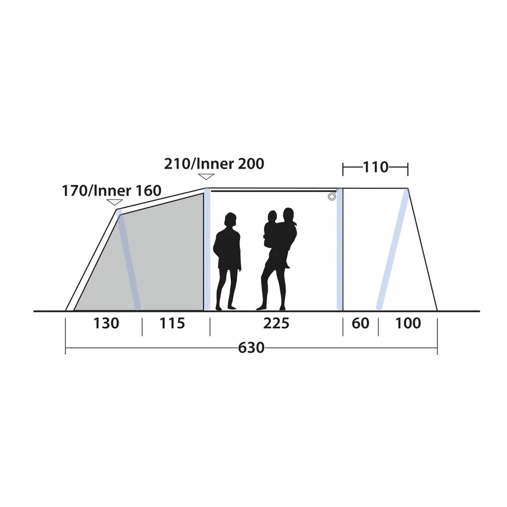 De Outwell Sacramento 4 Air is een familietent voor kleine gezinnen of koppels die extra ruimte willen. Dankzij de Rigid Air-technologie is het opzetten eenvoudig – pomp de drie luchtbuizen op en de tent staat zonder traditionele stokken. Het duurzame tentdoek is volledig waterdicht met getapete naden en brandvertragend. De leefruimte is ruim genoeg voor een tafel en stoelen en heeft grote getinte ramen voor een aangenaam licht. Alle ramen hebben gordijnen waarmee je eenvoudig licht en privacy kunt regelen.