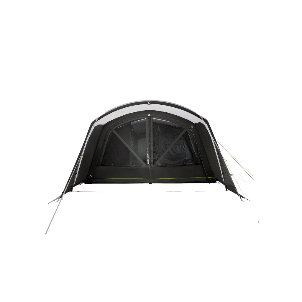 Een tent die net zo veel ruimte biedt als een grote caravan, maar ook snel is op te zetten. Flexibele, afneembare binnententen maken het mogelijk om de leefruimte te vergroten als één van de slaapcabines niet nodig is. De leefruimte is uitgerust met een geïntegreerde lichtslinger in het plafond die zorgt voor een aangename sfeer in de avond. Een extra deur aan de achterkant zorgt voor gemakkelijke toegang. Maak je geen zorgen over de stabiliteit: de Outwell Vermont 7 Air is getest tot windsnelheden van 88 km/u, dus slecht weer zal je vakantie niet verpesten — in elk geval niet je tent.