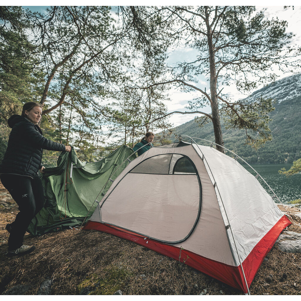 Zelfstaand 2-persoons koepeltent met zo'n goede hoogte dat twee personen rechtop in de tent kunnen zitten. De tent combineert aluminiumstokken met een goede tentdoek met versterkingen op kwetsbare punten, waardoor het zeer bestand is tegen weer en wind. Dubbele openingen maken de tent gemakkelijk toegankelijk en eenvoudig te ventileren op warme dagen.
