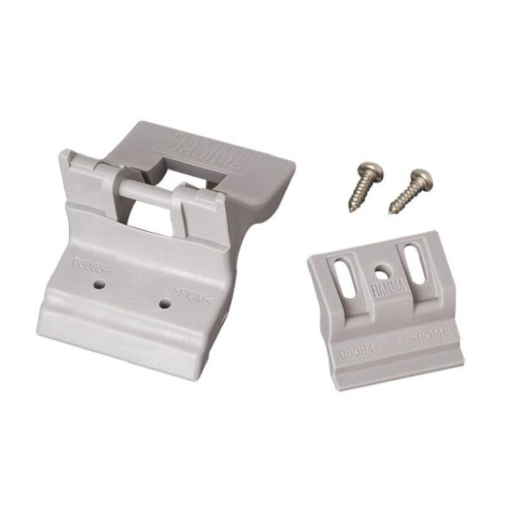 Beugel voor rafter/dwarsligger voor Fiamma F45 luifels. Deze set is nodig om de dwarsligger aan de cassette te bevestigen (de set is ook inbegrepen bij de F45-dwarsligger).