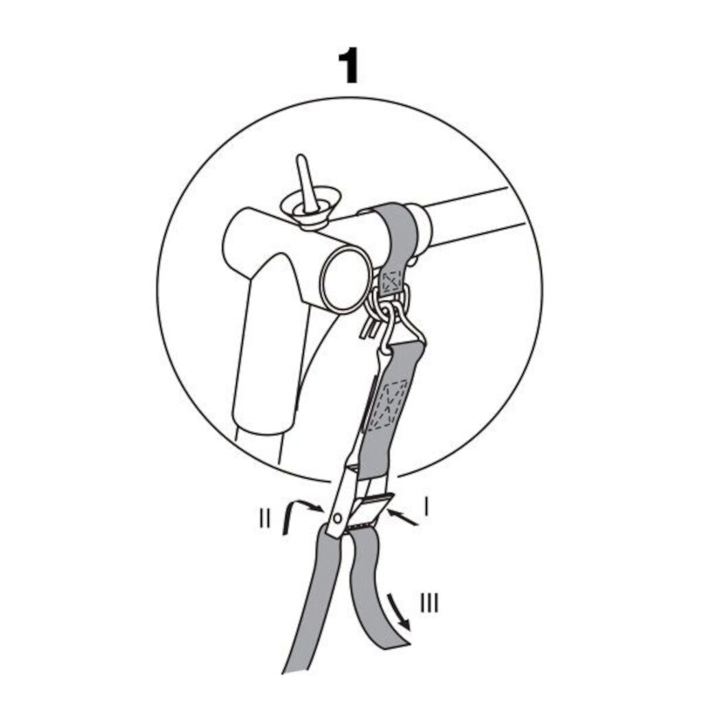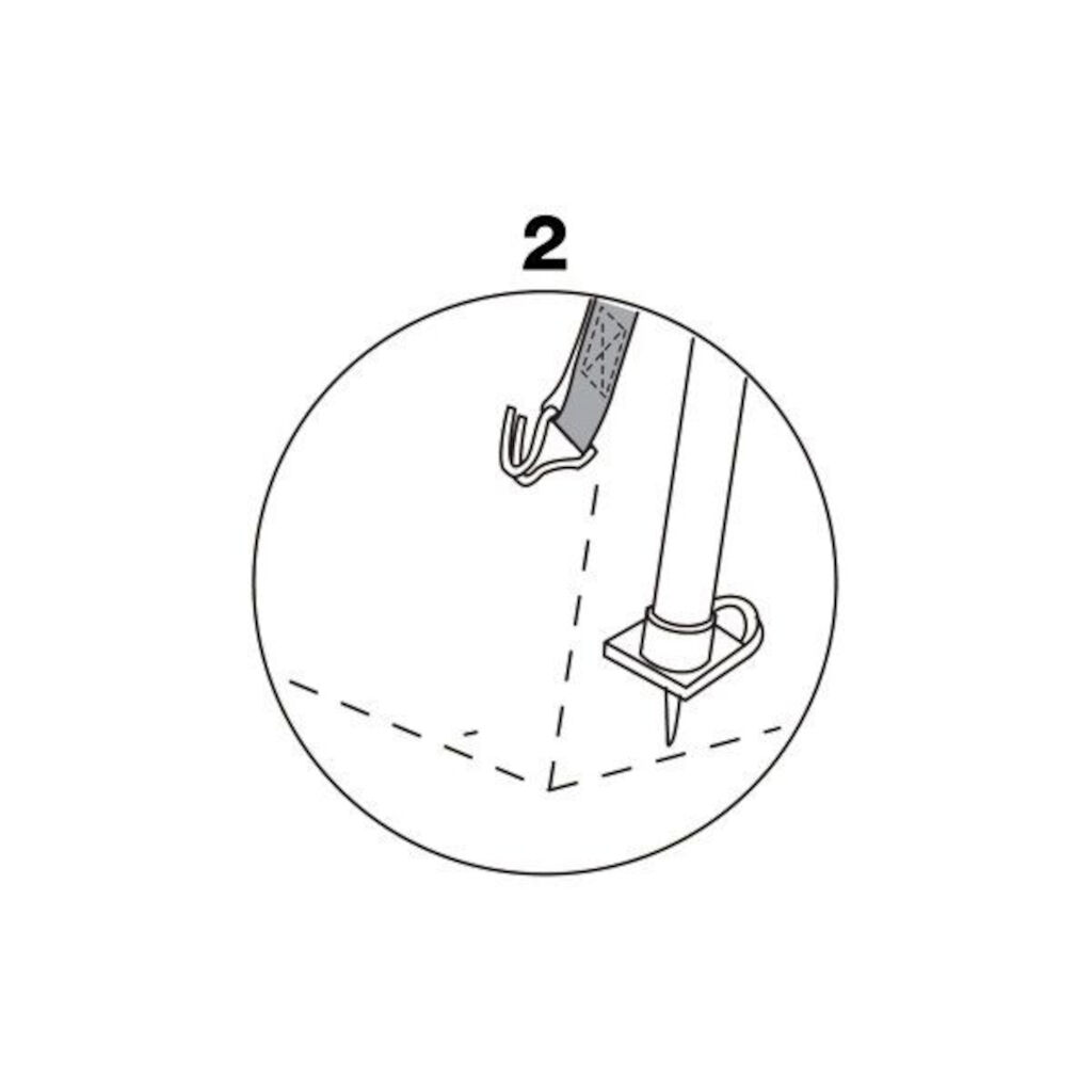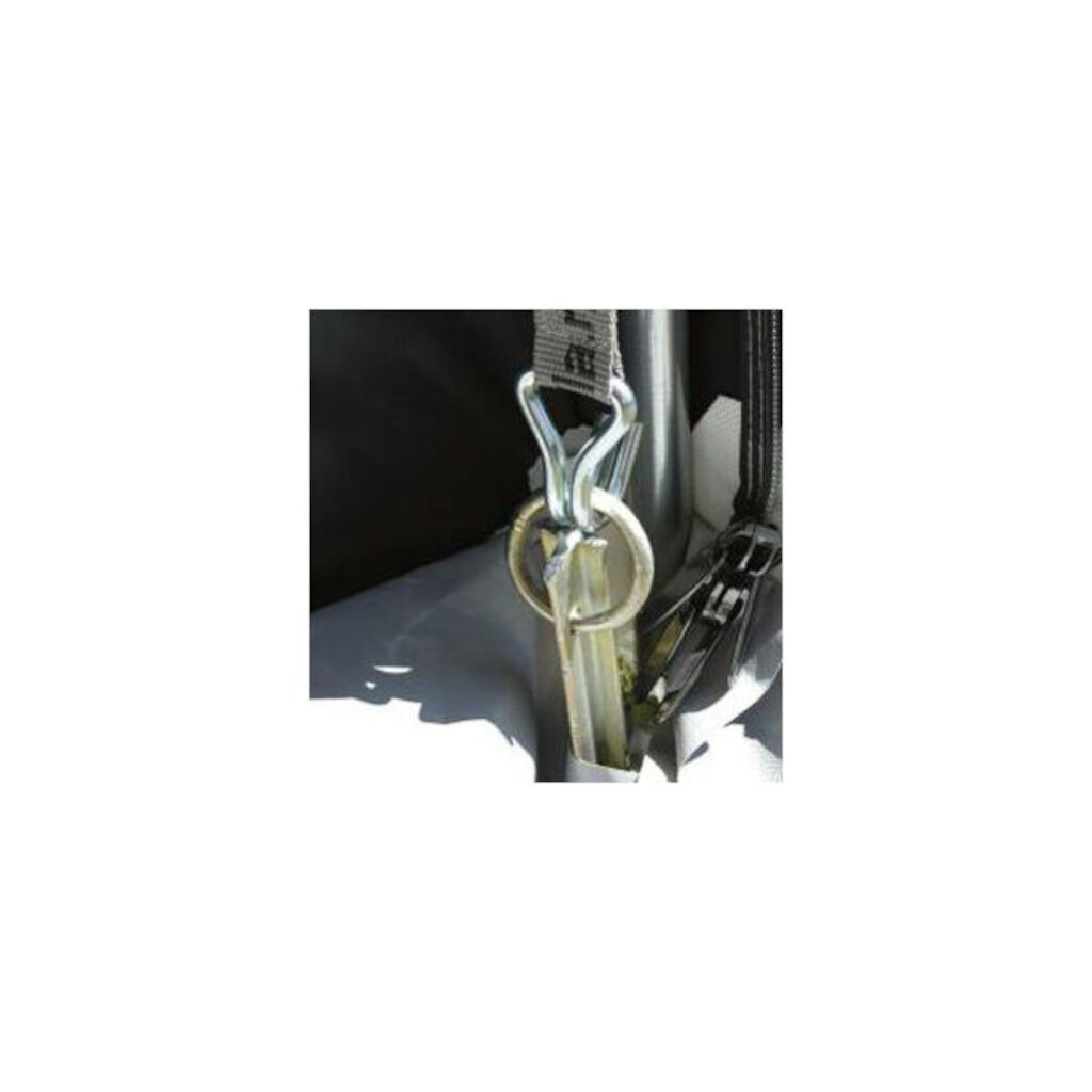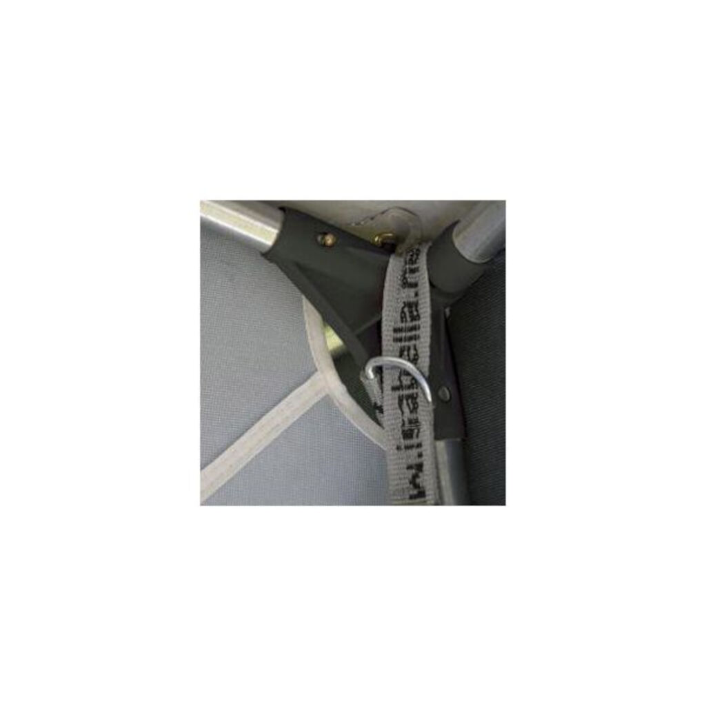 Stormbeveiligingsbanden die je aan de binnenkant bevestigt om de slijtage van het doek te verminderen en tegelijkertijd te beveiligen bij harde wind. Een extra pluspunt is dat je je geen zorgen hoeft te maken over struikelen over de stormbeveiligingsbanden.