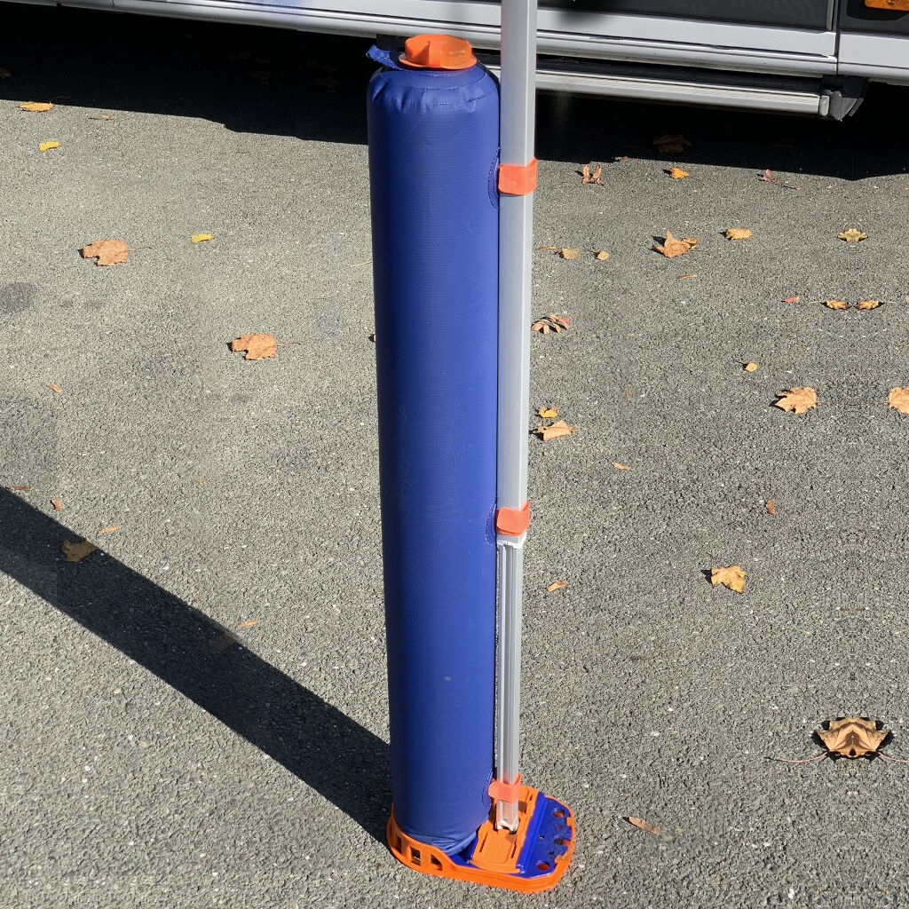 Gewichtstas die zeer handig is bij het opzetten van een luifel op asfalt, beton of trottoir. De gewichtstas kan worden gevuld met 10 L water en is eenvoudig aan de poten van de luifel te bevestigen. Perfect als anker/bevestigingspunt op harde of zeer losse ondergrond waar haringen niet voldoende zijn.