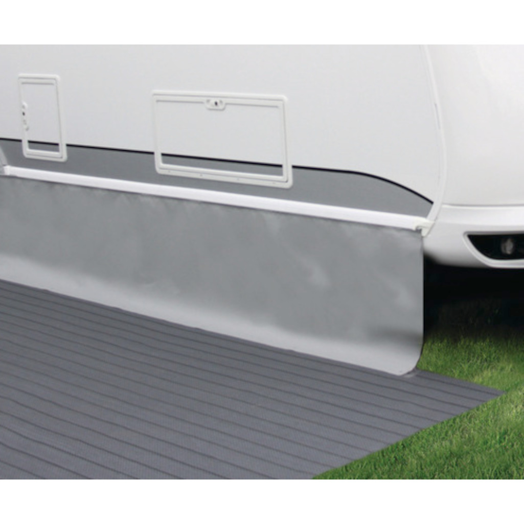 Bescherm de voortent tegen koude tocht en kleine insecten die van onder de caravan komen met een grondzeil van Svenska Tält.