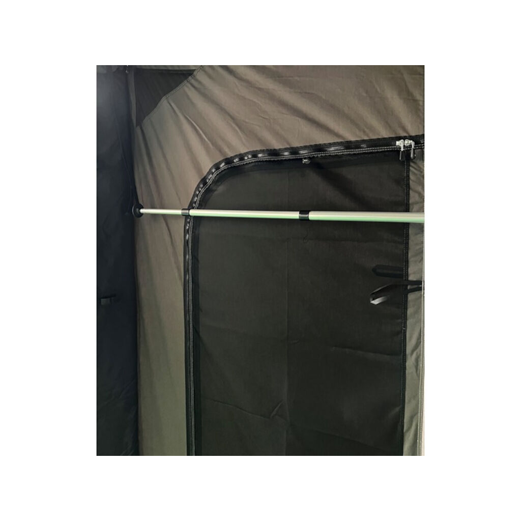 De veerstang biedt u de mogelijkheid om het bovenste deel van de raamsecties van de voortent te openen. De stang is telescopisch om de juiste lengte in te stellen. Een goede functie is dat als het slecht weer is, de stang kan worden verplaatst naar bevestigingen in de tent die van de achterkant naar de voorkant van de voortent lopen om als kledingstang te worden gebruikt. Perfect om natte kleding te drogen.