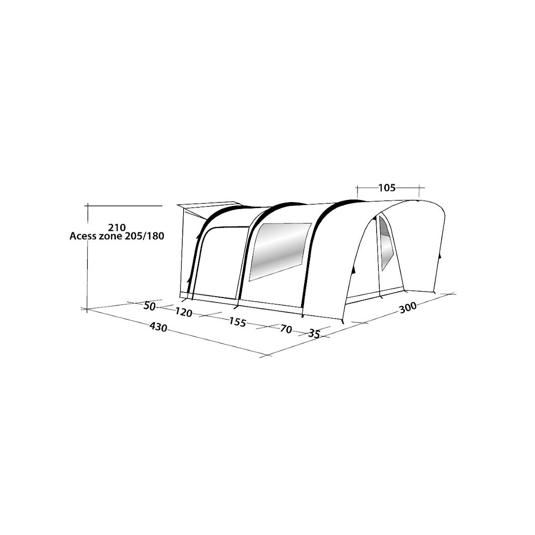 Easy Camp Guard Air biedt uw camper of auto een voortent. De tent is extreem eenvoudig op te zetten en past op de meeste auto's met een hoogte tussen 180 en 205 cm tot de lijst of het dak. Bevestig gewoon het tentdoek aan de grond met de sluis naar de auto, pomp de in het tentdoek geïntegreerde kanalen op die het frame van de tent vormen. Bevestig vervolgens de tent via de kederslijst aan de auto/luifel, aan de reling of over de auto. De enige staaf is degene die over het zonnedak bij de opening aan de voorkant zit.